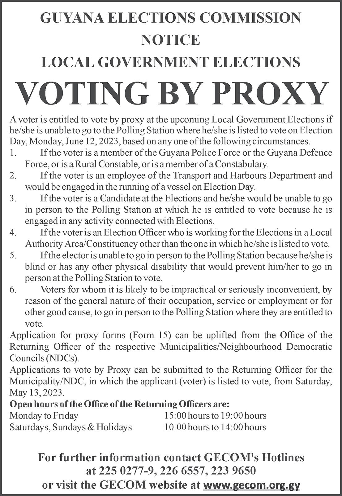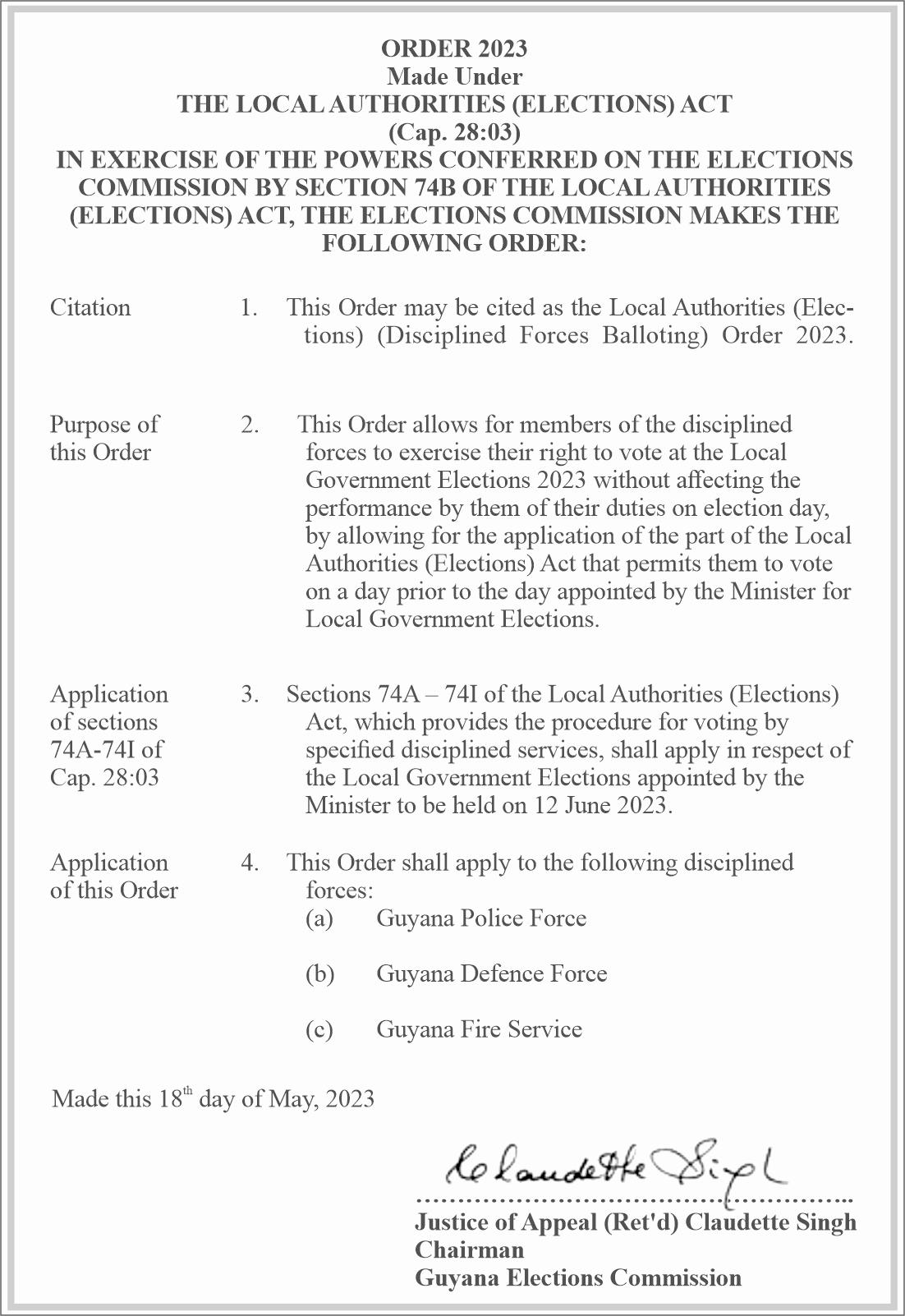 Services’ preparation for the Elections, which is also welcome. While the Joint Services staff will cast their votes on June 06, 2023 (D-Day), the Joint Services Training Committee is conducting intensive training in preparation for all possible scenarios on and before Election Day. In addition, GECOM has invited the application of interested persons and groups for their consideration and approval as Observers, which is most welcome. It is applaudable that Local Observer Groups will be accredited to observe the Elections.