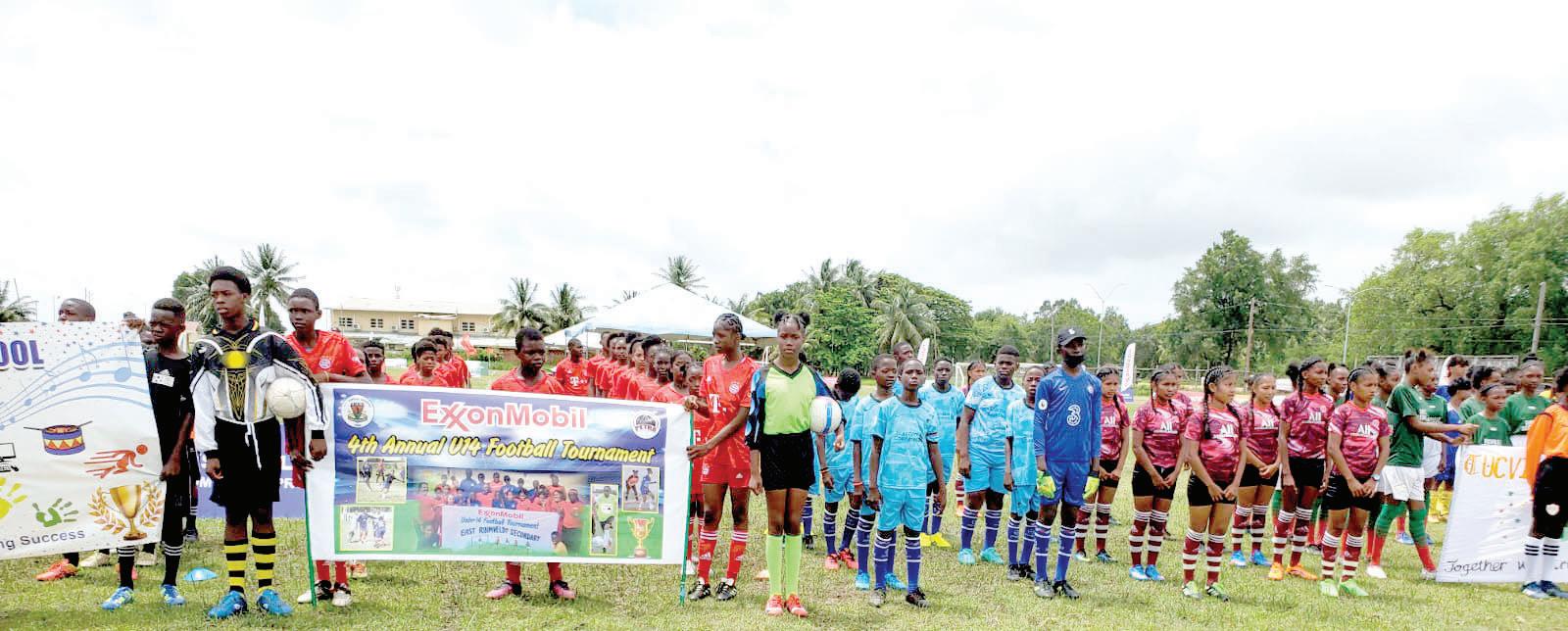 The4th edition of the ExxonMobil Boys’ and Girls’ Under-14 Schools’ Football tournaments kicked off on Saturday morning amidst much pomp and splendour resulting from the customary march past ceremony.