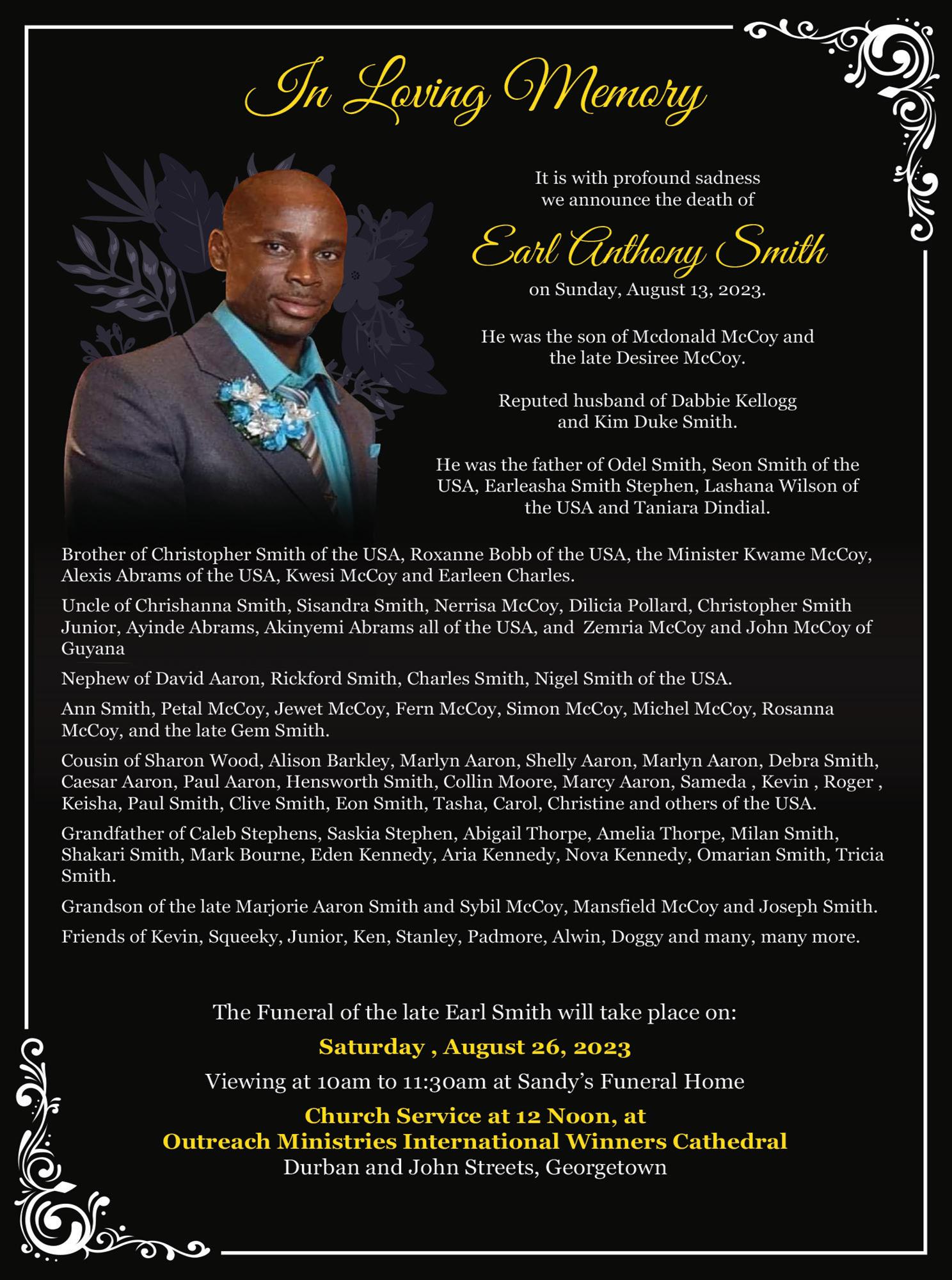 The dead man has been identified as 40-year-old Mark Braithwaite of Four Miles Housing Scheme. The 34-year-old suspect, of Second Avenue, Bartica, is in Police custody.