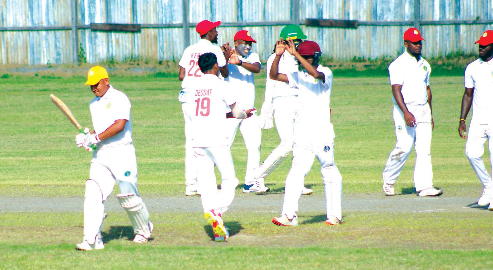 Ronaldo Renee was unbeaten on 16, while Malcolm Hubbard was on 14. The final session saw wickets tumble as batsmen looked to attack as if it was a one-day game. Deodat took the bulk of the wickets for Berbice, and also pulled off a splendid catch at long-off to send the batsman Sampson back to the pavilion.