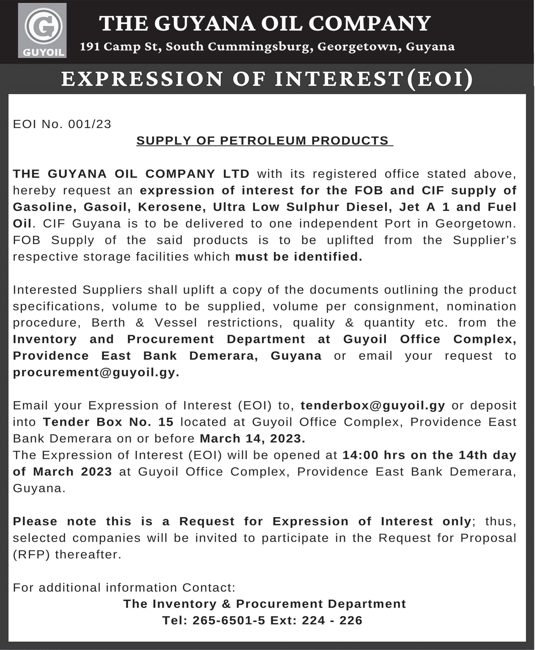 Mailing address: Queens Atlantic Investment Estate Industrial Site, Ruimveldt, Georgetown Email: news@guyanatimesgy.com, marketing@guyanatimesgy.com