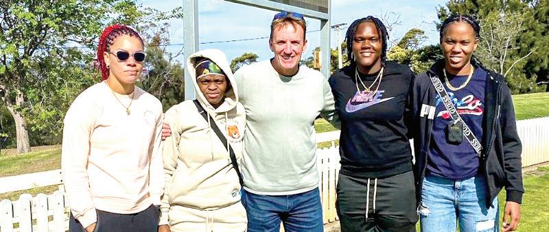 Coach Damien Wright with players, from left: Cherry-Ann Fraser, Jannillea Glasgow, Shawnisha Hector and Kate Wilmott