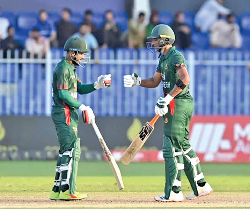 – this time over Ghazanfar's head – before nailing a sweep off Rashid to propel Bangladesh forward.