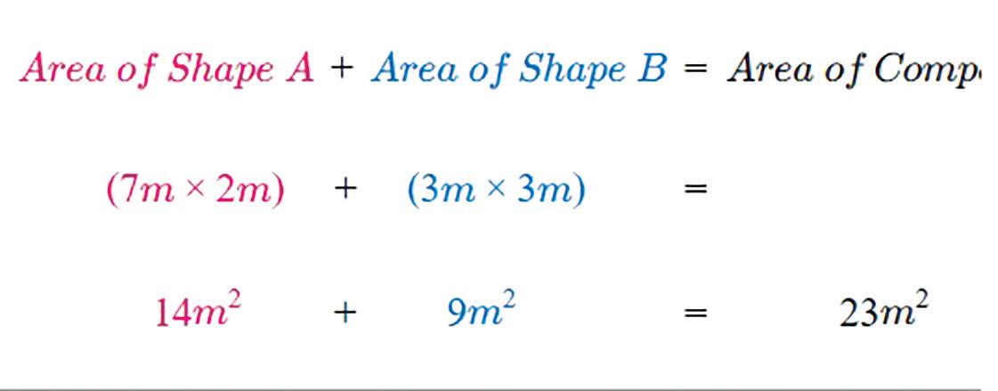 To find the area of composite shapes, you must decompose the composite shape into basic shapes, then find the area of each of the basic shapes and add them together.