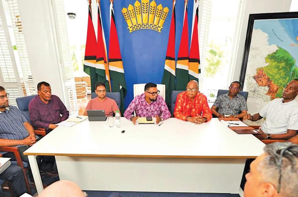 Pon Sunday read the riot act to the contractor, consultants and the local technical team working on the rehabilitation and expansion of the East Bank Demerara (EBD) Public Road, as well as the Guyana Police Force (GPF) over the miles-long traffic buildup on Saturday. As a result of ongoing construction works, sections of the two-lane road at Soesdyke, in the vicinity of St Mary’s, were closed off, resulting in only one lane of traffic being allowed to move at a time – causing major chaos along the upper East Bank corridor. During a meeting with the contractor, China Road & Bridge Corporation (CRBC); consultant, Sheladia Associates Inc; engineers from the Public Works Ministry and the GPF’s Traffic Department along with other stakeholders, President Ali, accompanied by Cabinet Ministers, upbraided the contractor and consultant on the pace of the project as well as the manner in which traffic arrangements are being followed. He cautioned them about the seriousness of the situation, the implications of delays, and what is expected of them moving forward in the timely execution of the project.
