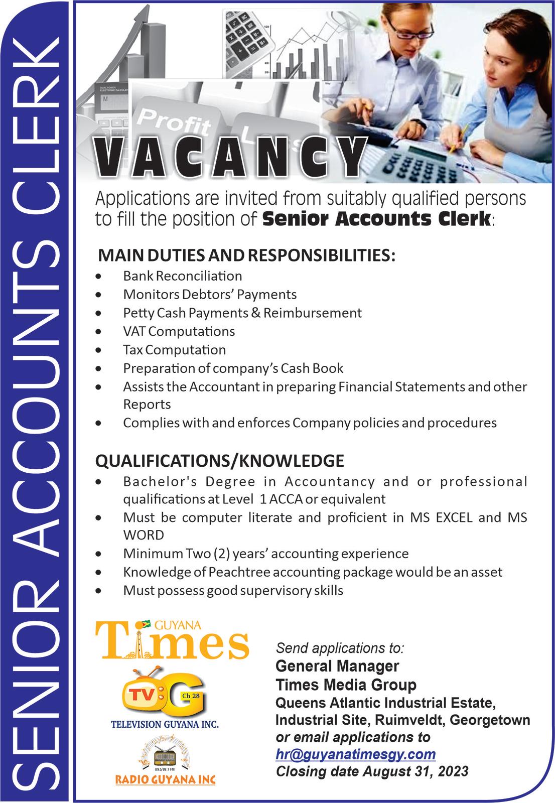22 SATURDAY, AUGUST 19, 2023 CLASSIFIED ADS VACANCIES 1 Male Engineer. Must have at least 10 years of experience in road and building construction. Must be mobile. Email C.V to rbinvestmentinc@gmail.com. Call # 613-0855. 1 Male Project Supervisor (Road Construction Field). Ages 35 to 50 years. Must have managerial experience at least 5 to 8 years. Must be mobile. Email C.V to rbinvestmentinc@gmail.com. Call # 613-0855. Bobcat roller operators. Ages 25 and over. Must have at least 5 years of experience. Call # 6130855. Truck and Canter Drivers. Ages 30 and over. Must have at least 5 years of experience. Call # 6130855. Skilled Labourers (Road Construction). Ages 20 and over and Diesel Mechanic. Call # 6130855.