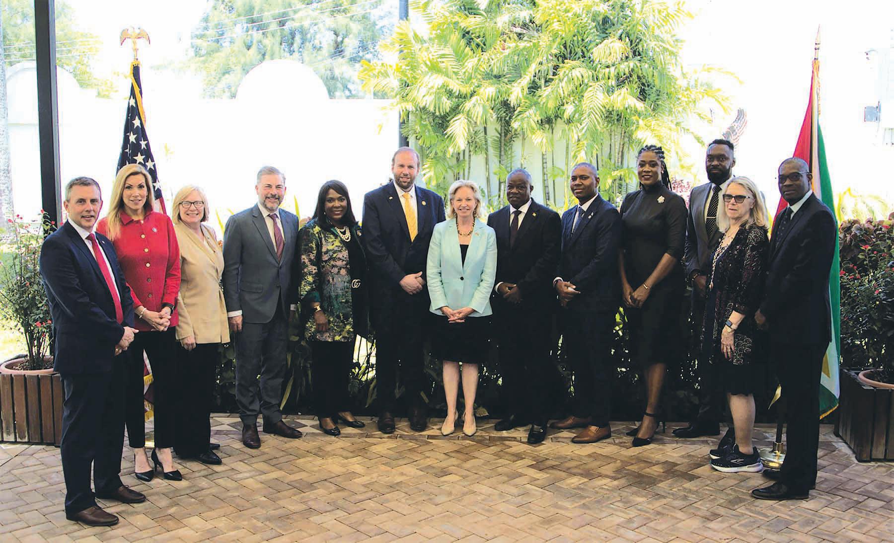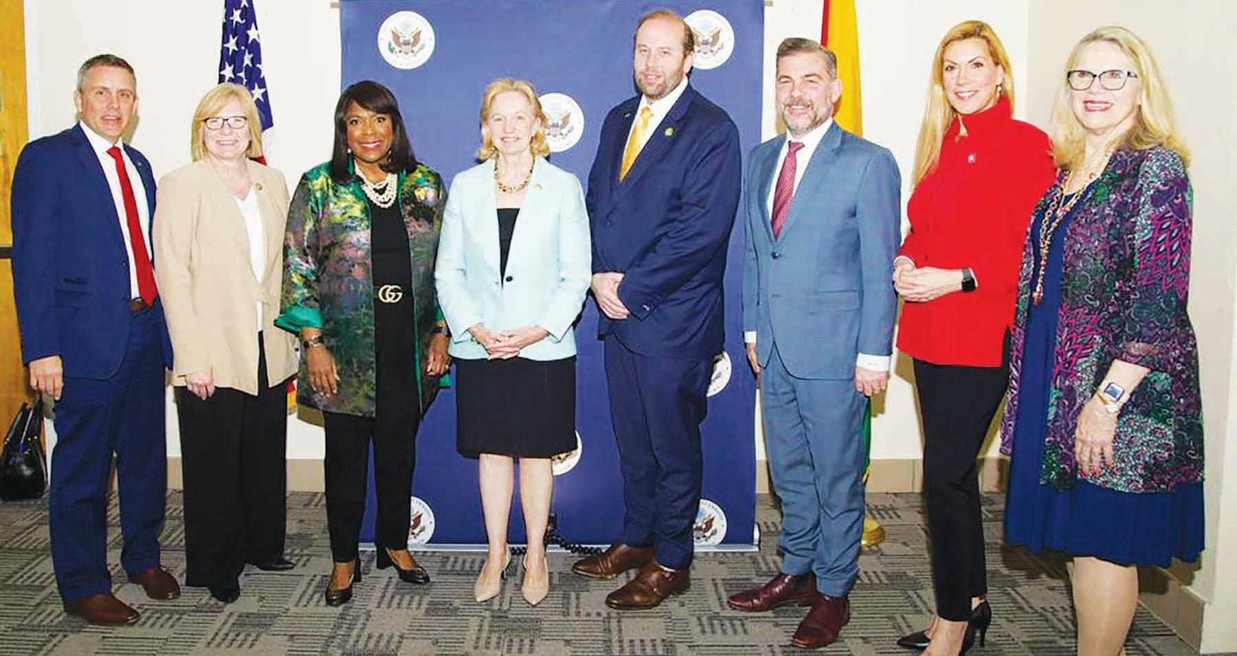 US Ambassador to Guyana Sarah-Ann Lynch with the seven-member delegation from the US House Committee on Ways and Means