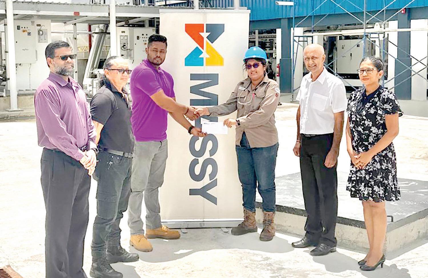 Committee, Mr. Jeewanram Persaud, President Mrs. Vidushi Persaud-McKinnon, and Secretary-General/Head Coach, Mr. Nicholas Hing. Presenting the cheque were Ms. Lata Devi Ori, Massy Guyana’s Representative; Massy Gas Products CEO, Mr. Lekhnaraine Shivraj; and Assistant Vice President, Finance and Administration, Mr. Afzal Karim.