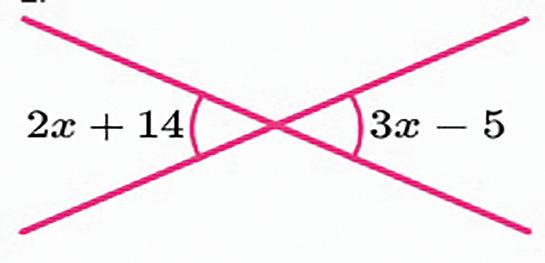 To find x and y, we refer to the above rules of vertically opposite angles.