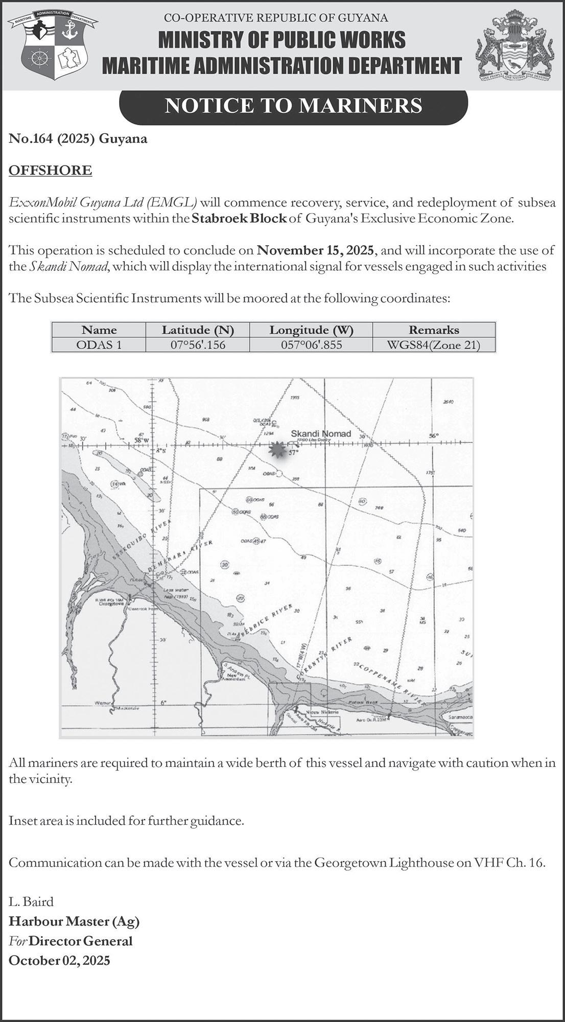 The Demerara Harbour Bridge will be closed to vehicular traffic on: Saturday, October 4 –01:45h–03:15h and Sunday, October 5 – 03:15h–04:45h.