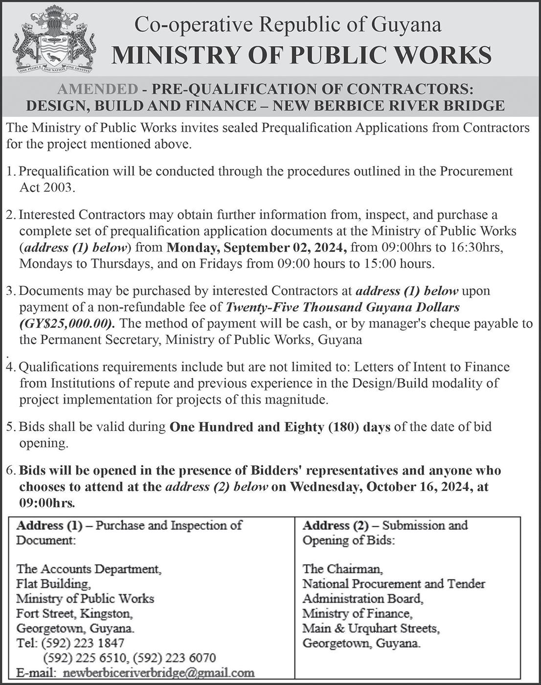 The Berbice Bridge will be closed to vehicular traffic on: