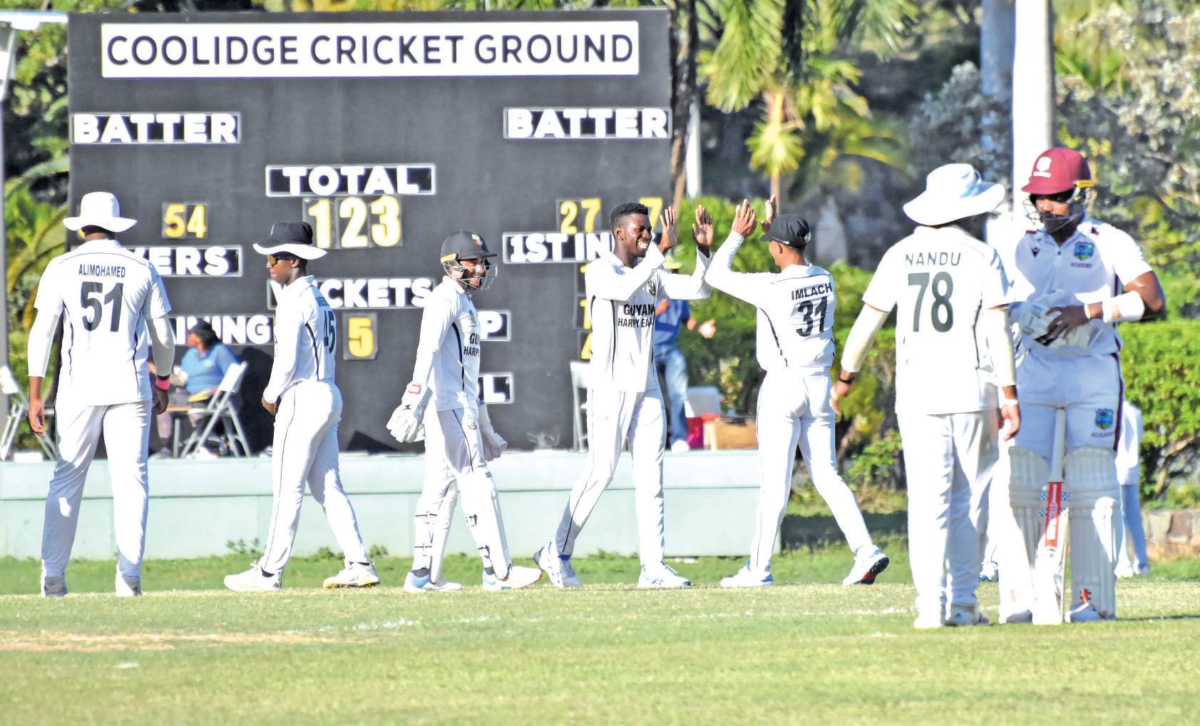 All the Guyana Harpy Eagles (GHE) required on Day 4 of their third-round encounter with the West Indies Academy on Saturday were three wickets to seal a victory.