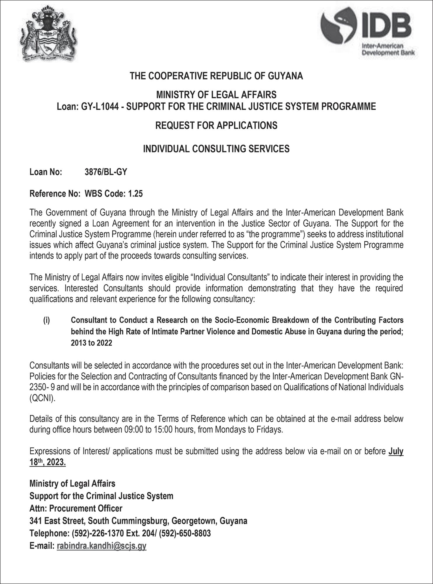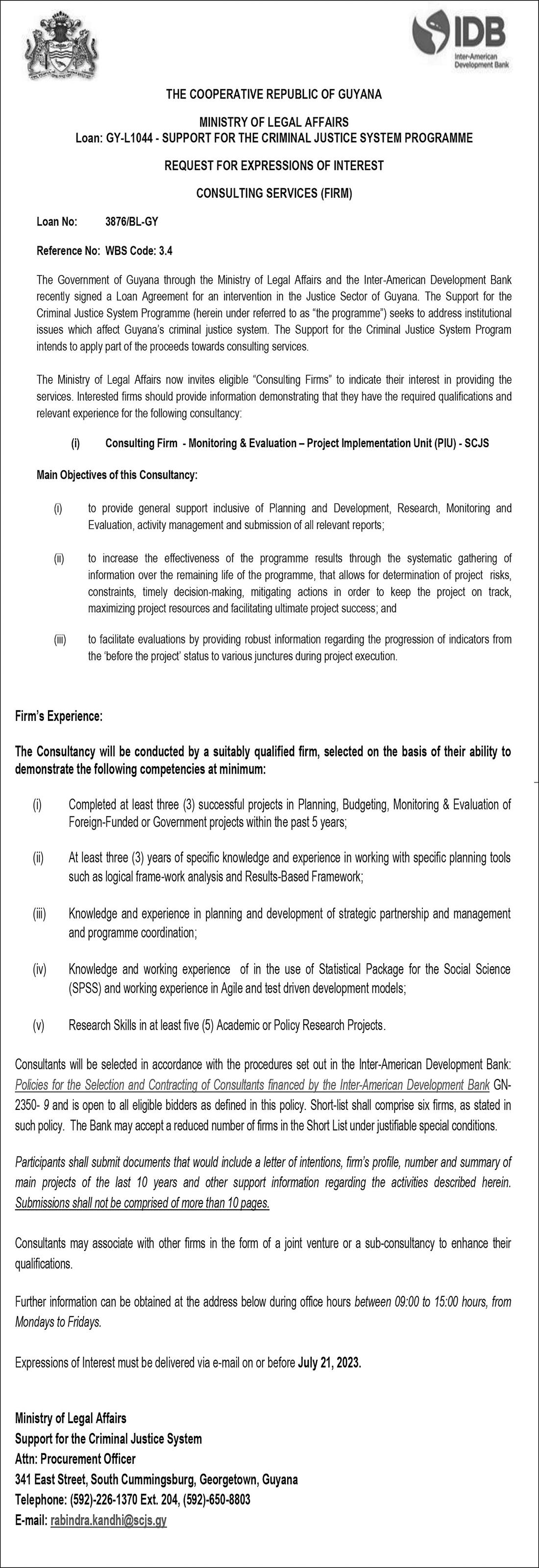 inter-agency training. The Guyana Police Force, the Customs Anti-Narcotics Unit (CANU), and the Guyana Prison Service will benefit from inter-agency training which will focus on public order and law enforcement.