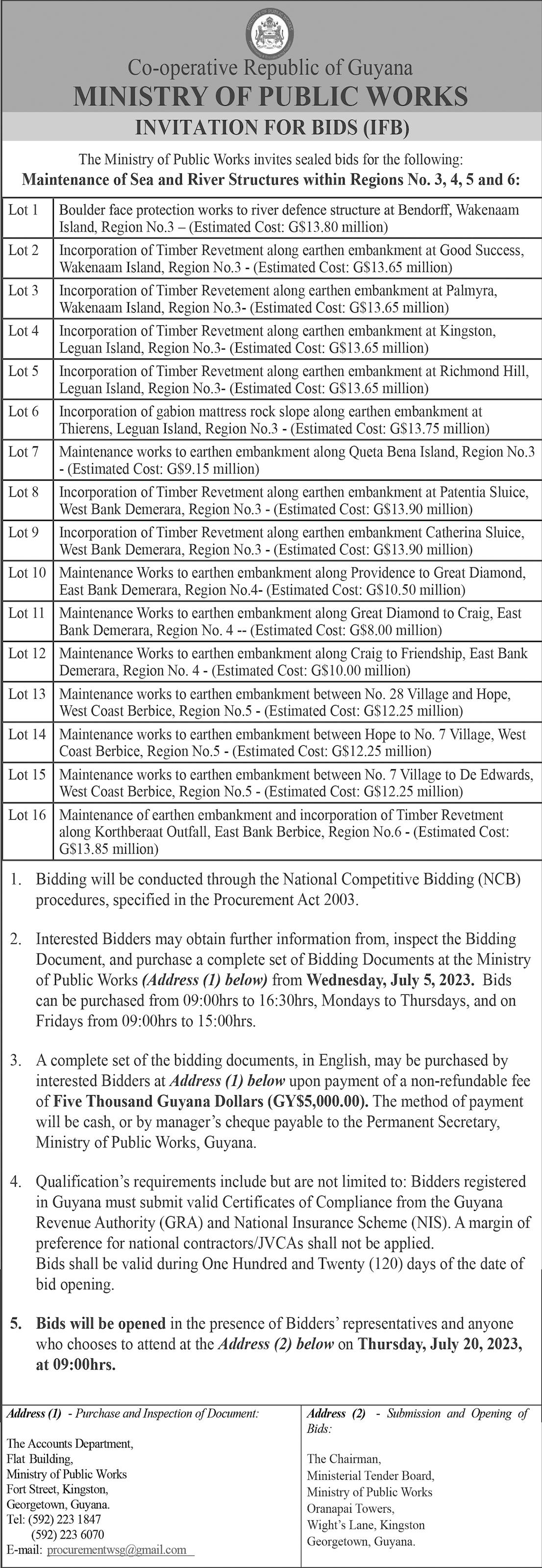 The Berbice Bridge will be closed to vehicular traffic on: