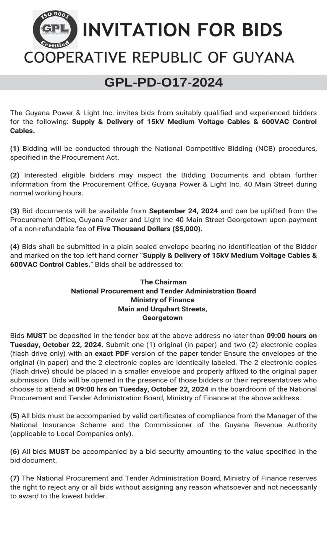 Only two weeks ago, the Government invited interested companies to submit proposals for a second power plant and NGL facility at Wales, West Bank Demerara, – the project site for the current Gas-toEnergy project.