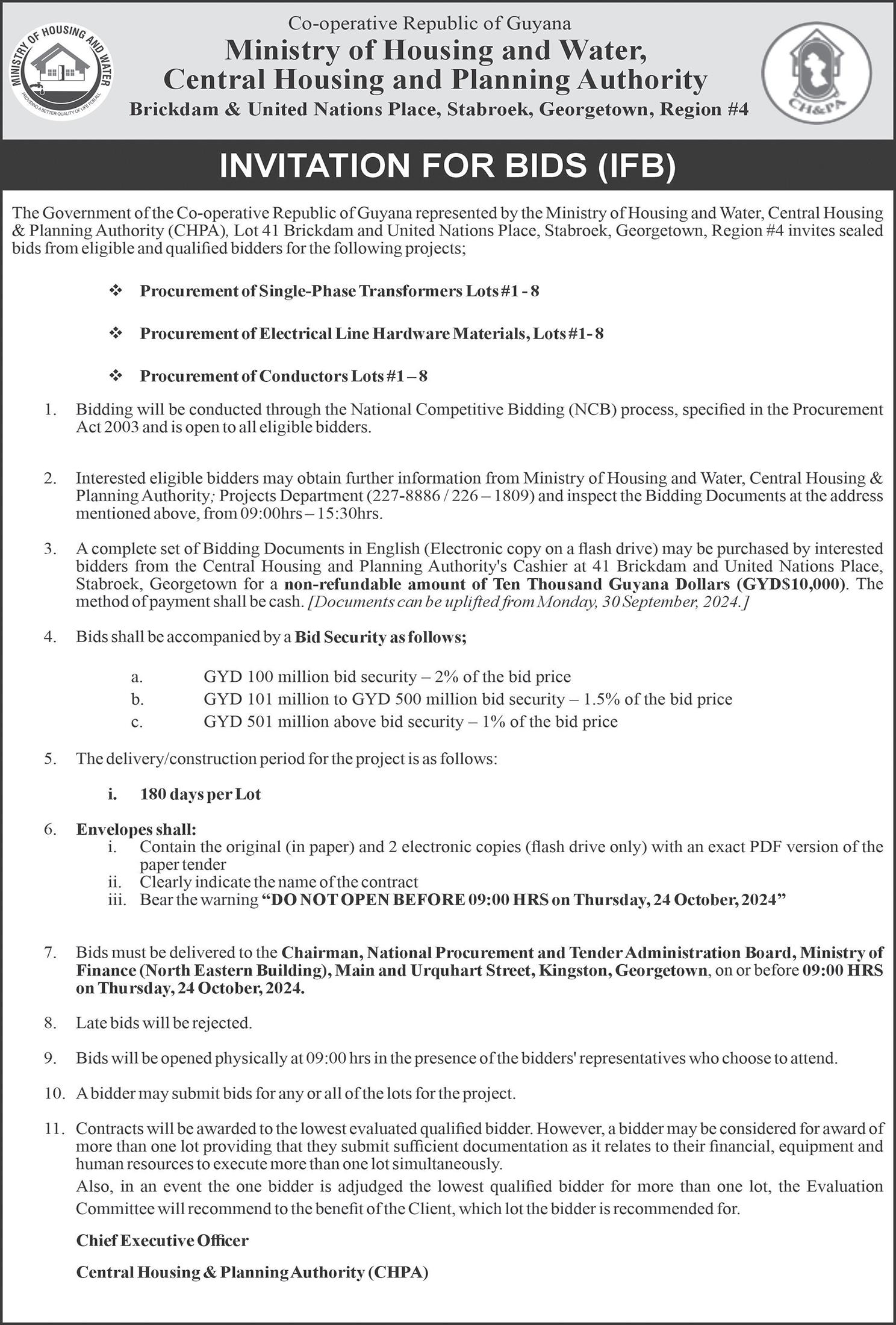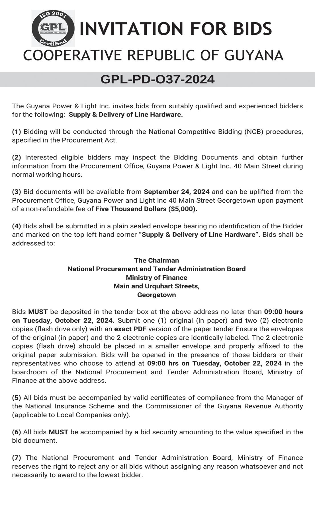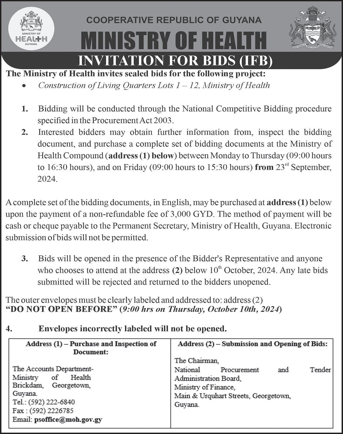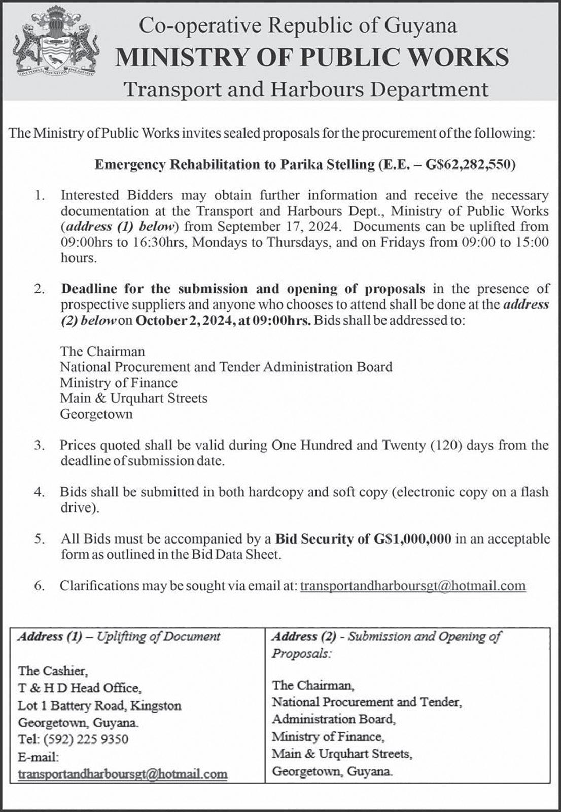 Interested parties must submit their proposals, which have to include financial projections of revenue, expenses, and investment returns, by 2: pm on November 14, 2024 to the National Procurement and Tender Board Administration (NPTAB).