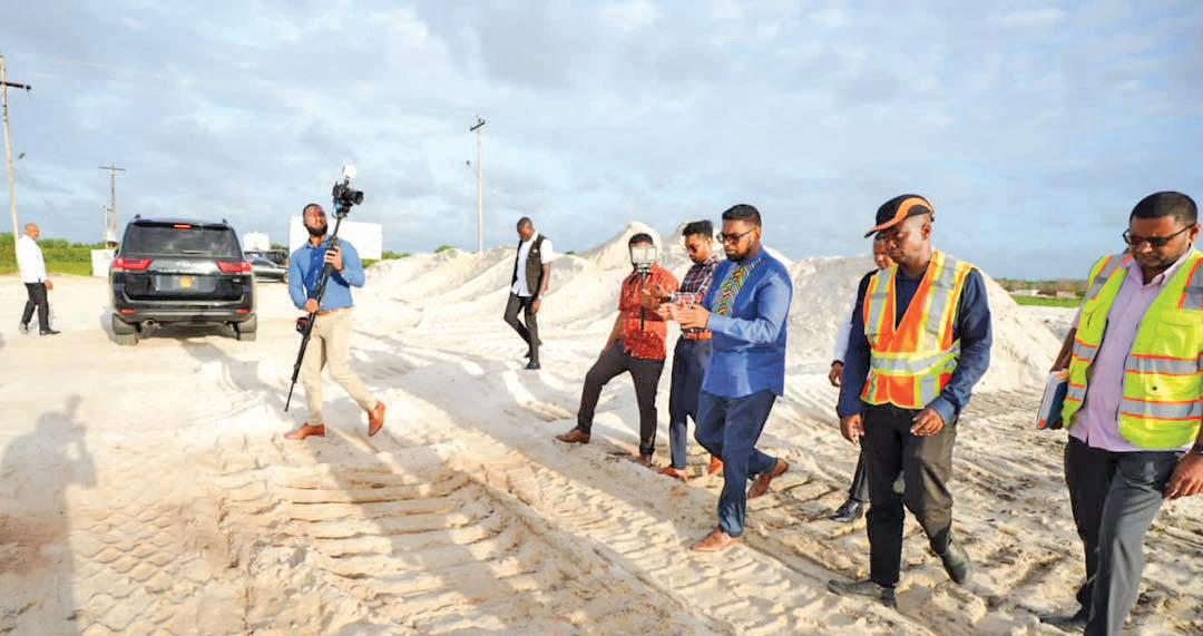 Currently, some 6.5 kilometres of land-clearing and sand-filling works have been completed at both the Ogle and Eccles ends. President Ali was told that the entire 7.8-km main alignment will be completely sand-filled by