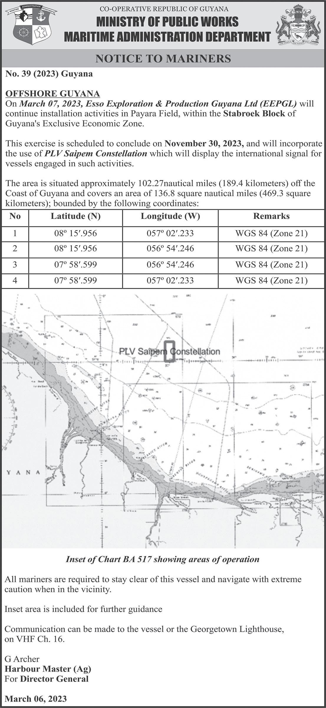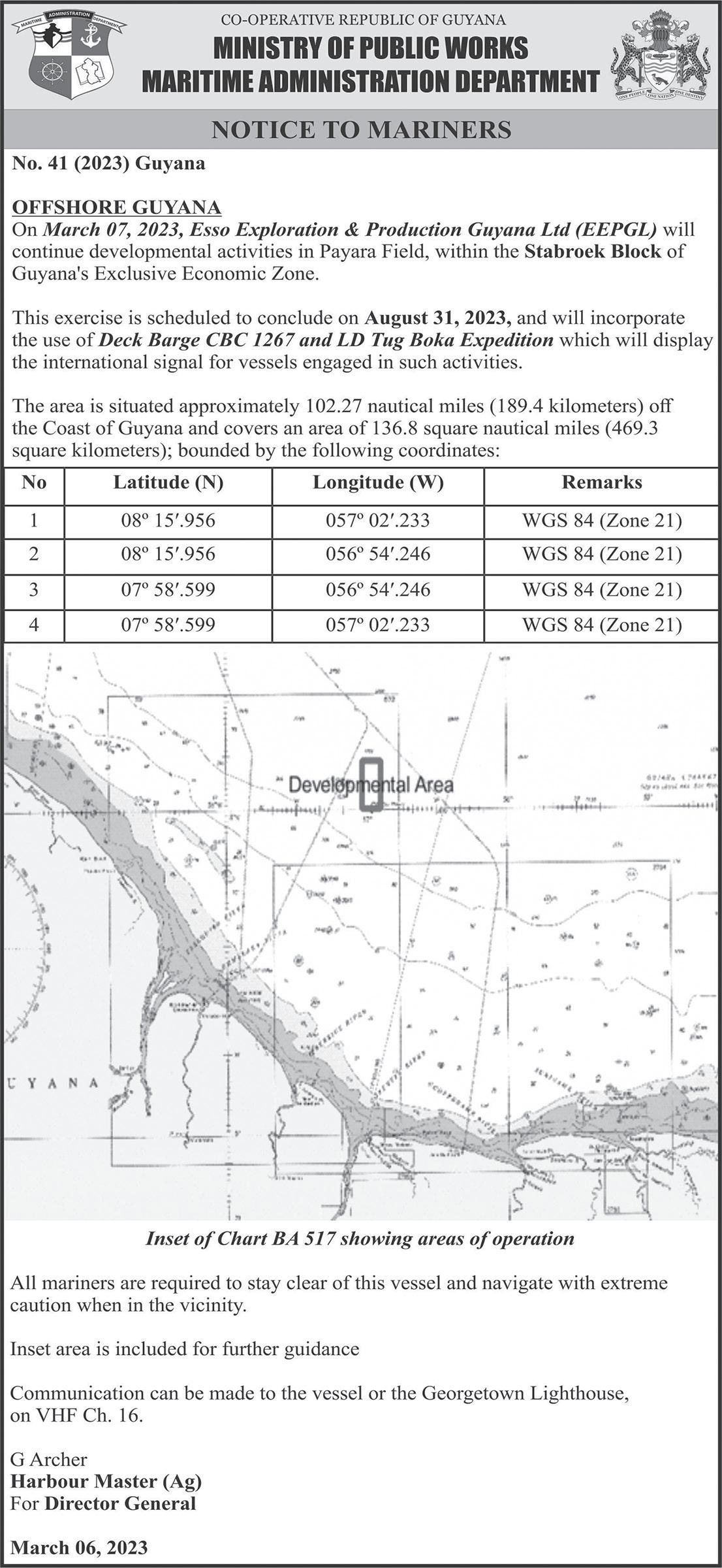 The Guyana Government launched the current oil block auction in December 2022, putting 14 areas offshore up for grabs – 11 in the shallow area and three in the deep-sea area. Last month, Natural Resources Minister Vickram Bharrat disclosed that more than 20 renowned oil and gas companies have indicated their interest in buying oil blocks, and have already submitted bids. He had also indicated that given the overwhelming interest in the auction, the Government is mulling an extension of the April deadline for sub-