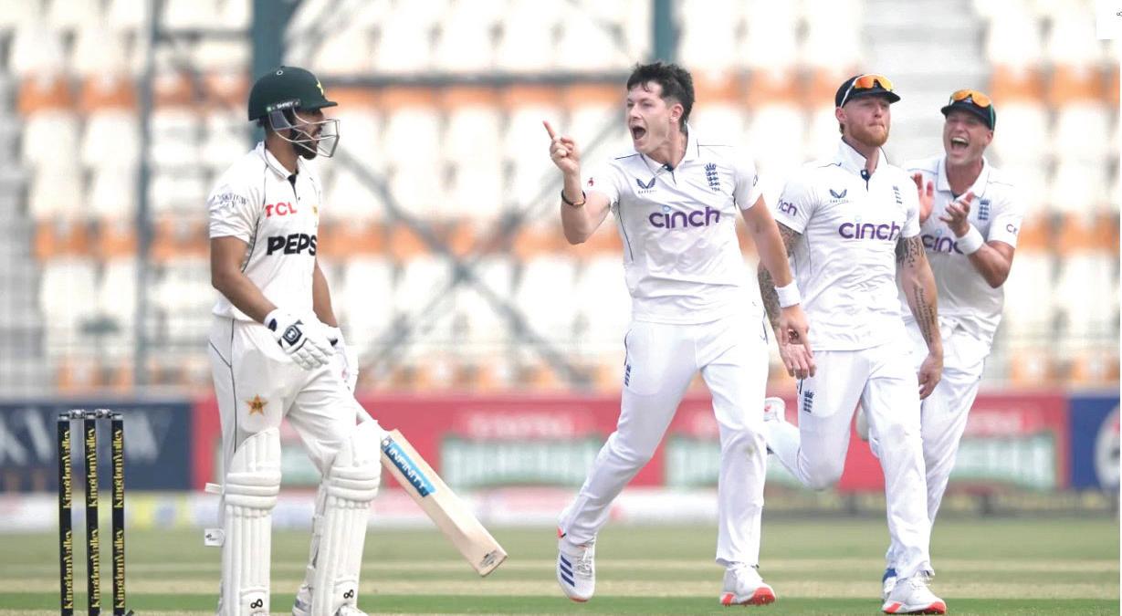 Duckett's outside edge to nestle in Salman Agha's midriff at slip. Before the over was finished, he had the dangerous Harry Brook too, who had thumped the legspinner Zahid Mahmood for two ominously emphatic fours in his brief stay, but had no answer to a fizzing offbreak that ripped into his stumps from a full length.