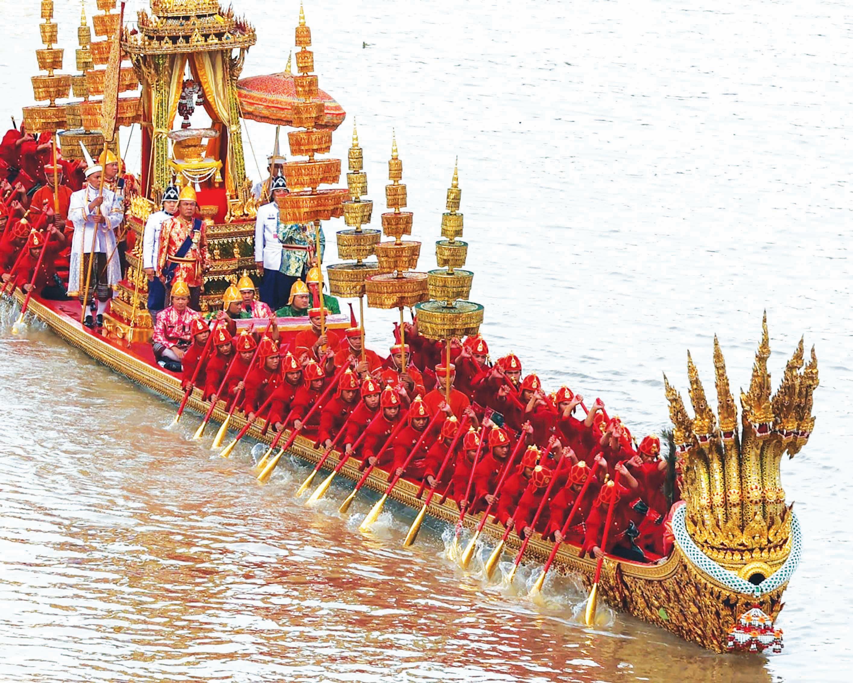 Thai oarsmen participating in a rehearsal of Thailand King Maha Vajiralongkorn’s Royal Barge Procession to mark his 72nd birthday. This procession took place along the Chao Phraya River in Bangkok, Thailand (Reuters)