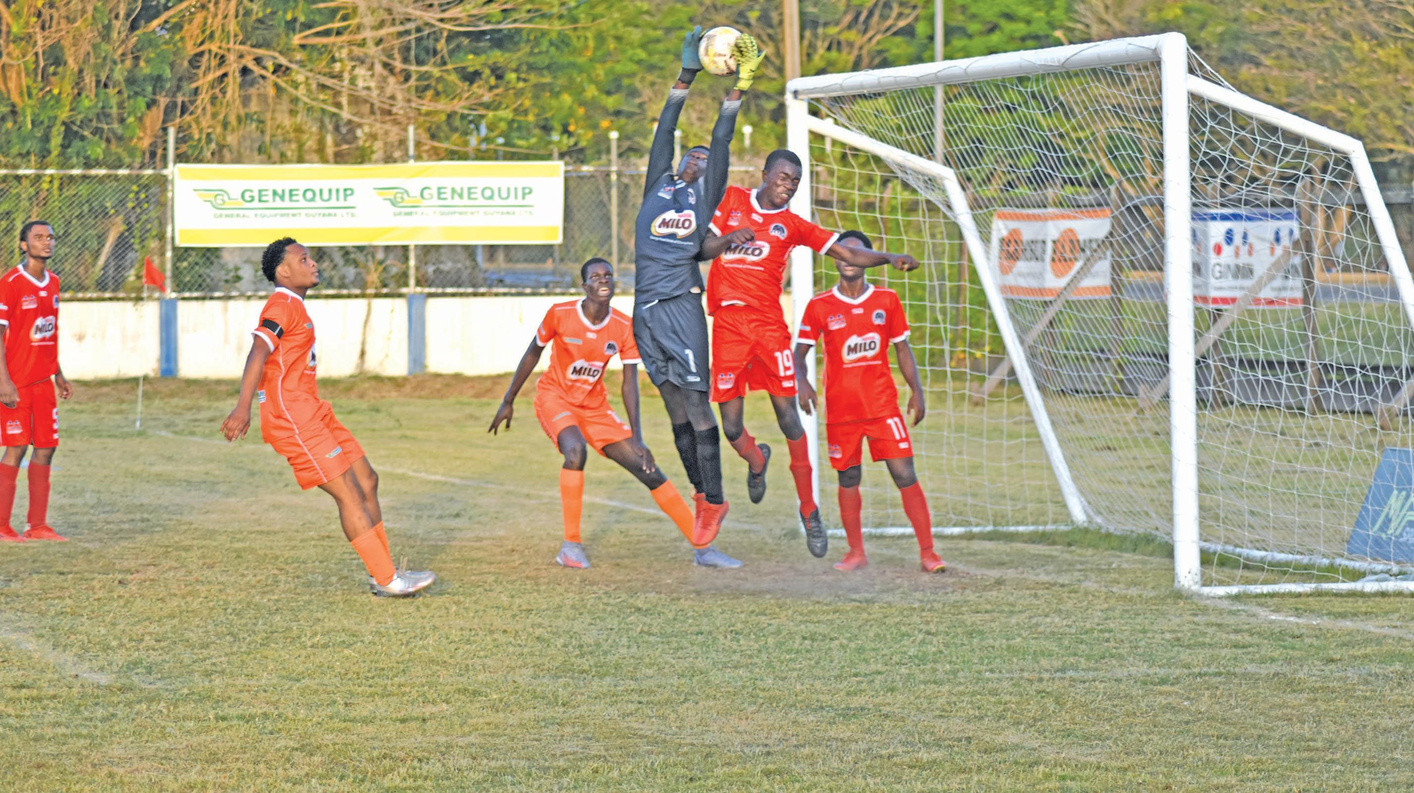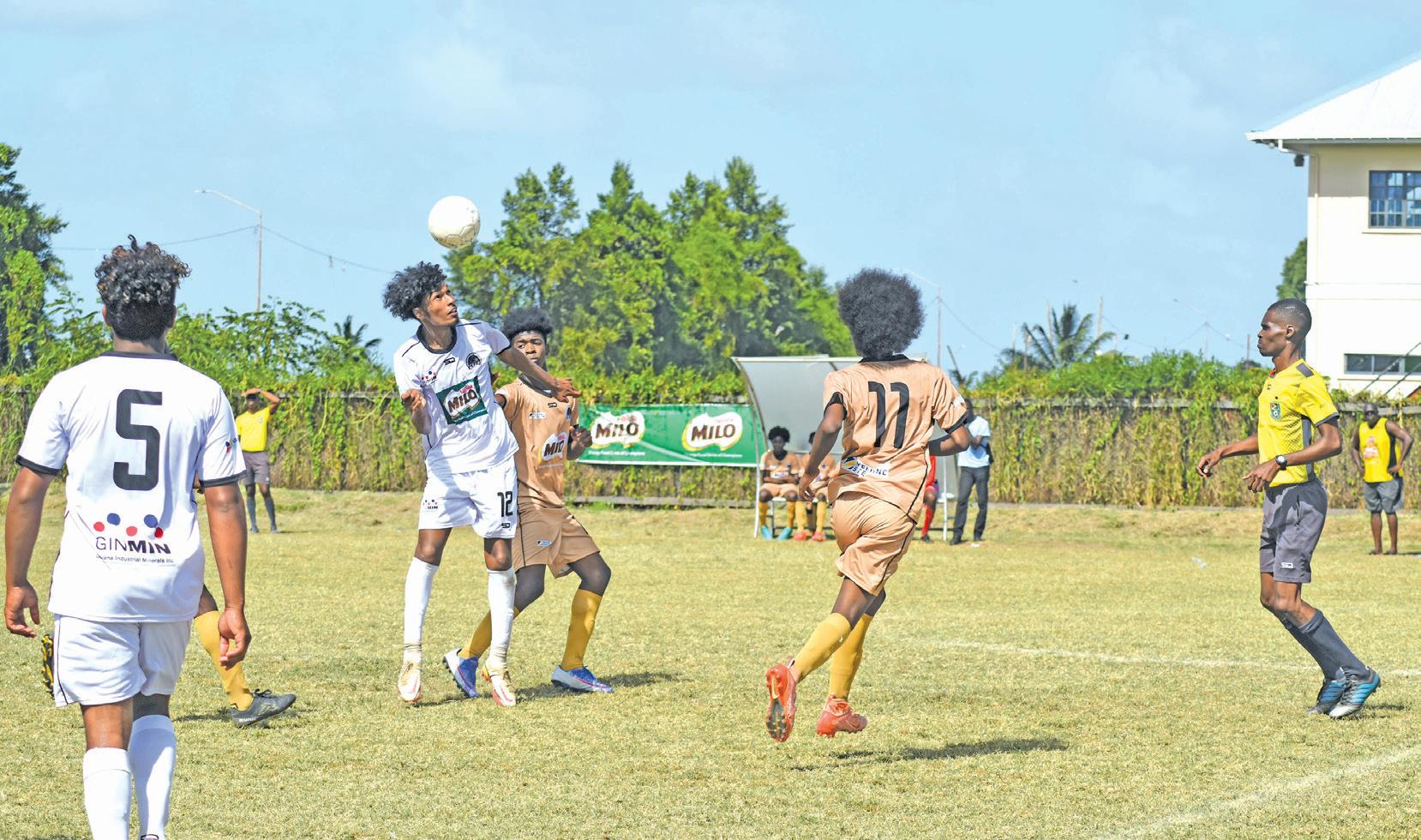 A very narrow encounter with Dolphin Secondary saw the defending champions overcome the odds to advance to the quarter-finals of the Milo Schools’ Under-18 football tournament, while victories were more forthcoming for the other teams competing on Saturday and Sunday.