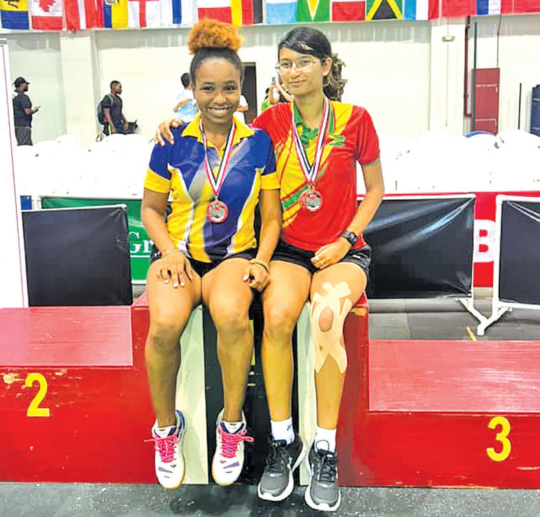 Priyanna Ramdhani and her women’s doubles partner Monyata Riviera sport their medals