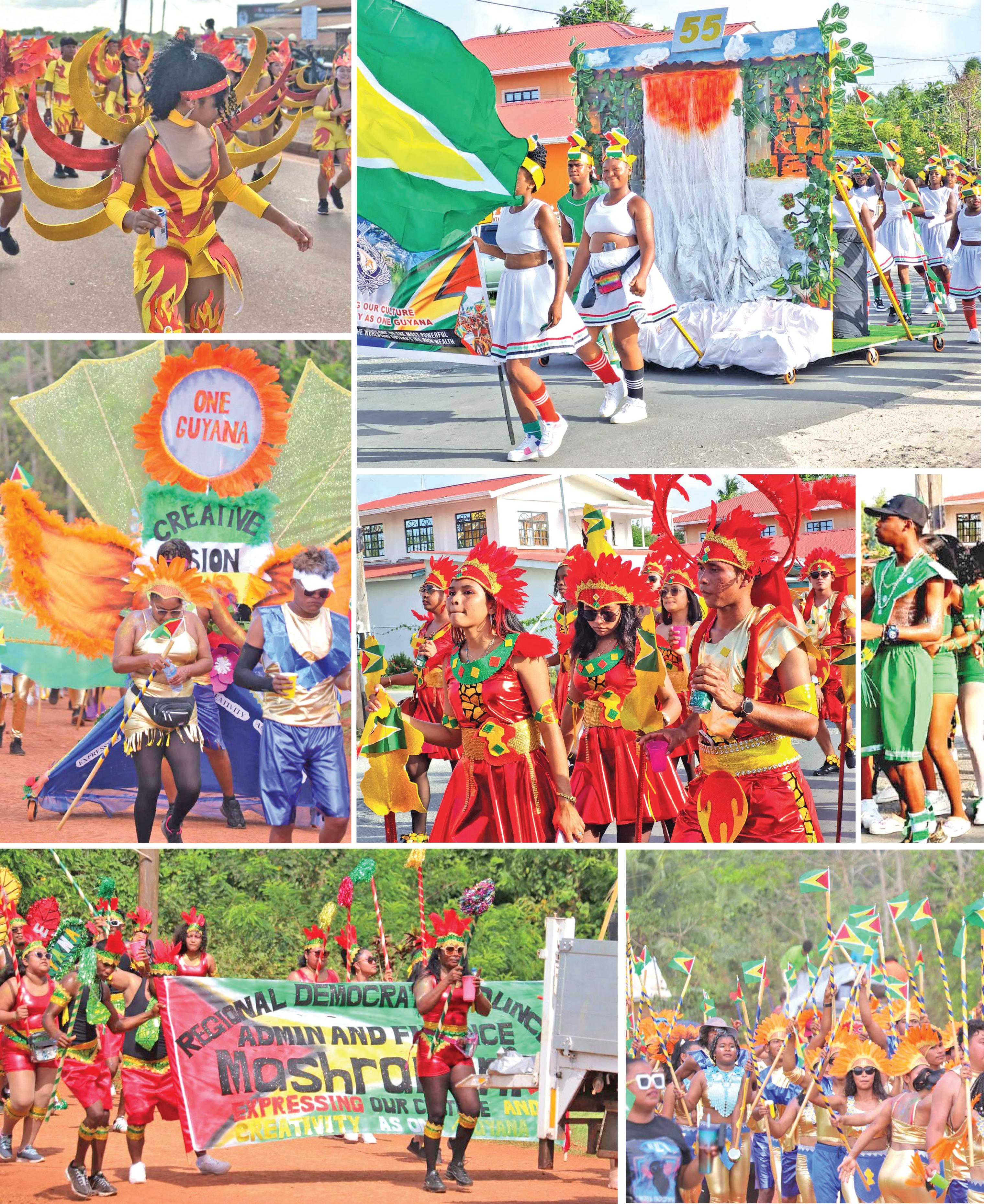 Region Two (Pomeroon-Supenaam) revellers adorned in vibrant costumes sway to the lively rhythms on Sunday as Guyana celebrated its 55th Republic Anniversary
