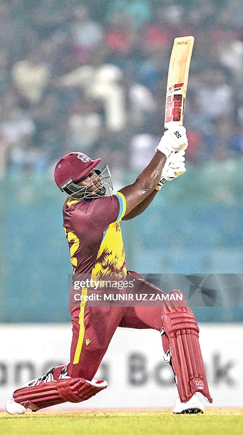 He slog-swept Mustafizur Rahman for a 102-metre six, before creaming Tanzim Hasan for three consecutive sixes in the last over. He hammered Tanzim's fulltoss, before going straight for the next two. West Indies picked up 51 runs in the last three overs, changing the complexion of the contest.