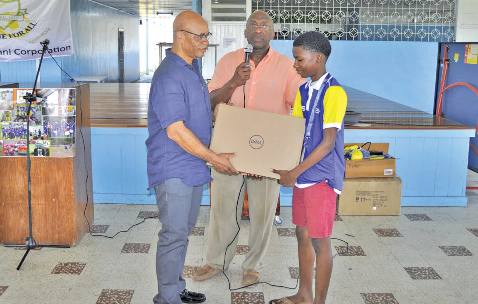 GFF TD (ag) Bryan Joseph, Coaches Seon Prince and Delon Williams, and MVP Sports’ Selvin Apple are flanked by players set to compete in tonight final