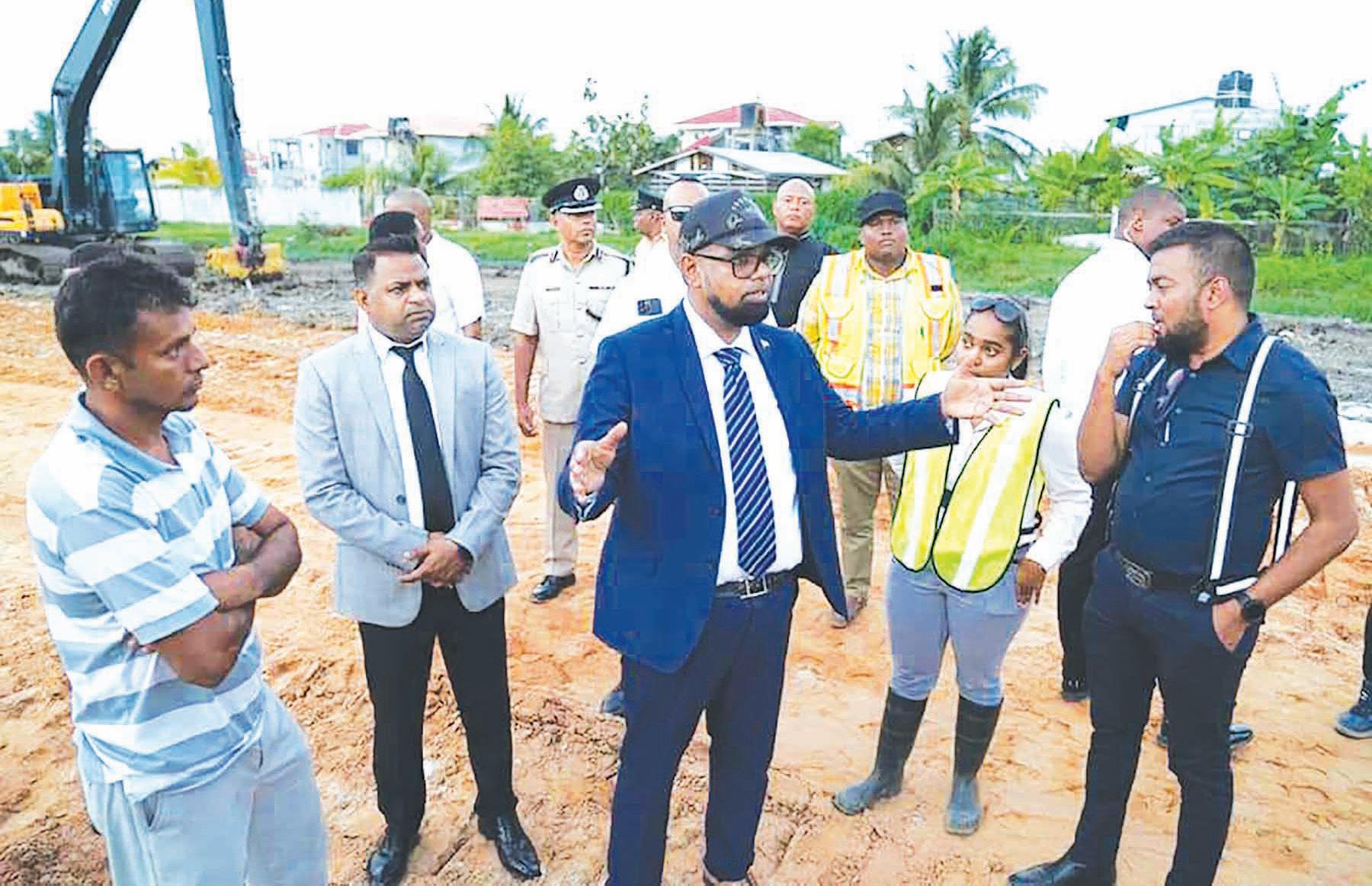 President Dr Irfaan Ali on Tuesday embarked on extensive tours of ongoing infrastructural developments along the East Coast corridor from Conversation Tree to Enmore, where he revealed that 800 acres of land will be developed into the Enmore industrial zone.