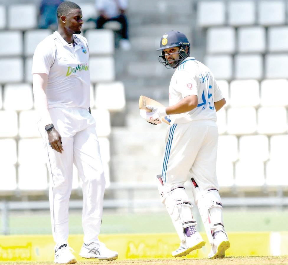 West Indies moved to Plan B after that, with Alzarri Joseph bowling the short stuff. With the ball coming slower off the surface, Rohit twice miscued the pull, but was