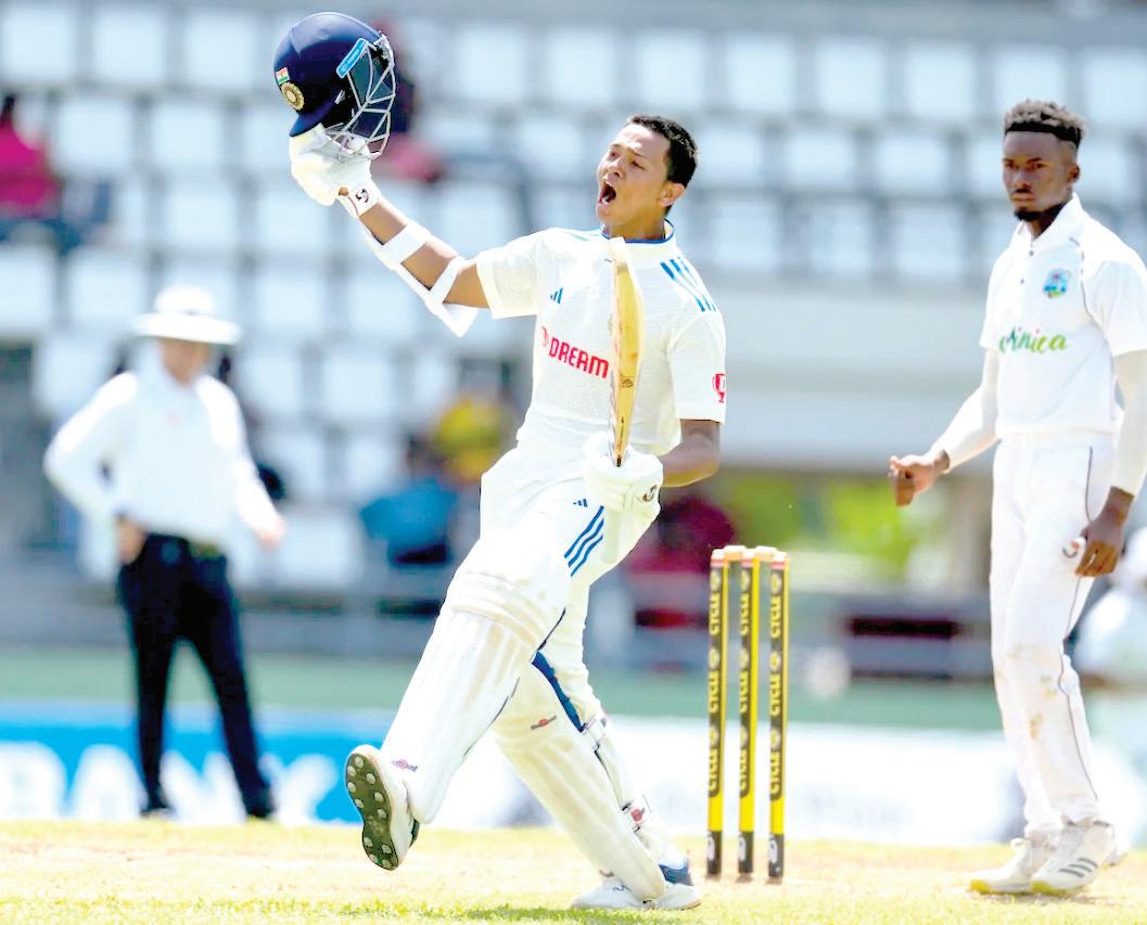 Jaiswal was the first to bring up his hundred, be coming the third Indian opener, after Shikhar Dhawan and Prithvi Shaw, and the 17th Indian overall, to do so on Test debut. Rohit fol lowed shortly after wards with a four off Alick Athanaze. It was his tenth cen tury in Test cricket, but only his second outside India in 27 matches.