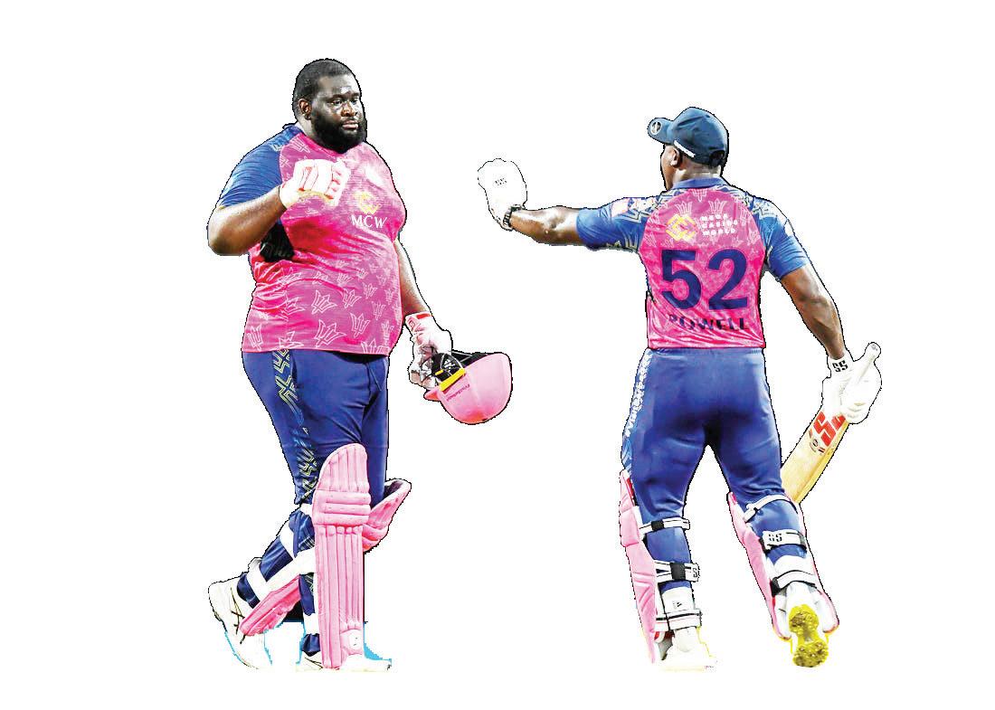 GUYANATIMESGY.COM FRIDAY, SEPTEMBER 15, 2023 23 SCOREBOARD Guyana Amazon Warriors (20 ovs maximum) Saim Ayub b Sikandar Raza 16 Matthew Nandu run out (Williams) 3 Shai Hope c & b Forde 38 Azam Khan †c Clarke b Joseph 40 Shimron Hetmyer not out 19 Keemo Paul c Clarke b Joseph 19 Romario Shepherd not out 10 Extras (b 5, lb 7, w 10) 22 TOTAL 19.6 Ov (RR: 8.35) 167/5 Fall of wickets: 1-10 (Matthew Nandu, 3.1 ov), 2-50 (Saim Ayub, 8.3 ov), 3-82 (Shai Hope, 13.1 ov), 4-119 (Azam Khan, 16.4 ov), 5-156 (Keemo Paul, 19.2 ov) BOWLING O-M-R-W Matthew Forde 4-0-18-1 Roston Chase 2-0-7-0 Alzarri Joseph 4-0-31-2 Sikandar Raza 3-0-14-1 McKenny Clarke 3-0-42-0 Peter Hatzoglou 4-0-43-0 St Lucia Kings (T: 168 runs from 20 ovs) Johnson Charles lbw b Shepherd 1 Colin Munro c Hope b Imran Tahir 55 Bhanuka Rajapaksa †c Hetmyer b Paul 86 Sean Williams not out 8 Sikandar Raza (c) not out 12 Extras (b 3, nb 2, w 3) 8 TOTAL 17.3 Ov (RR: 9.71) 170/3 Fall of wickets: 1-5 (Johnson Charles, 1.1 ov), 2-137 (Bhanuka Rajapaksa, 14.3 ov), 3-149 (Colin Munro, 15.5 ov) BOWLING O-M-R-W Dwaine Pretorius 4-0-26-0 Romario Shepherd 2-0-15-1 Keemo Paul 4-0-39-1 Imran Tahir 4-0-34-1 Odean Smith 1-3-25-0 Gudakesh Motie 2-0-28-0