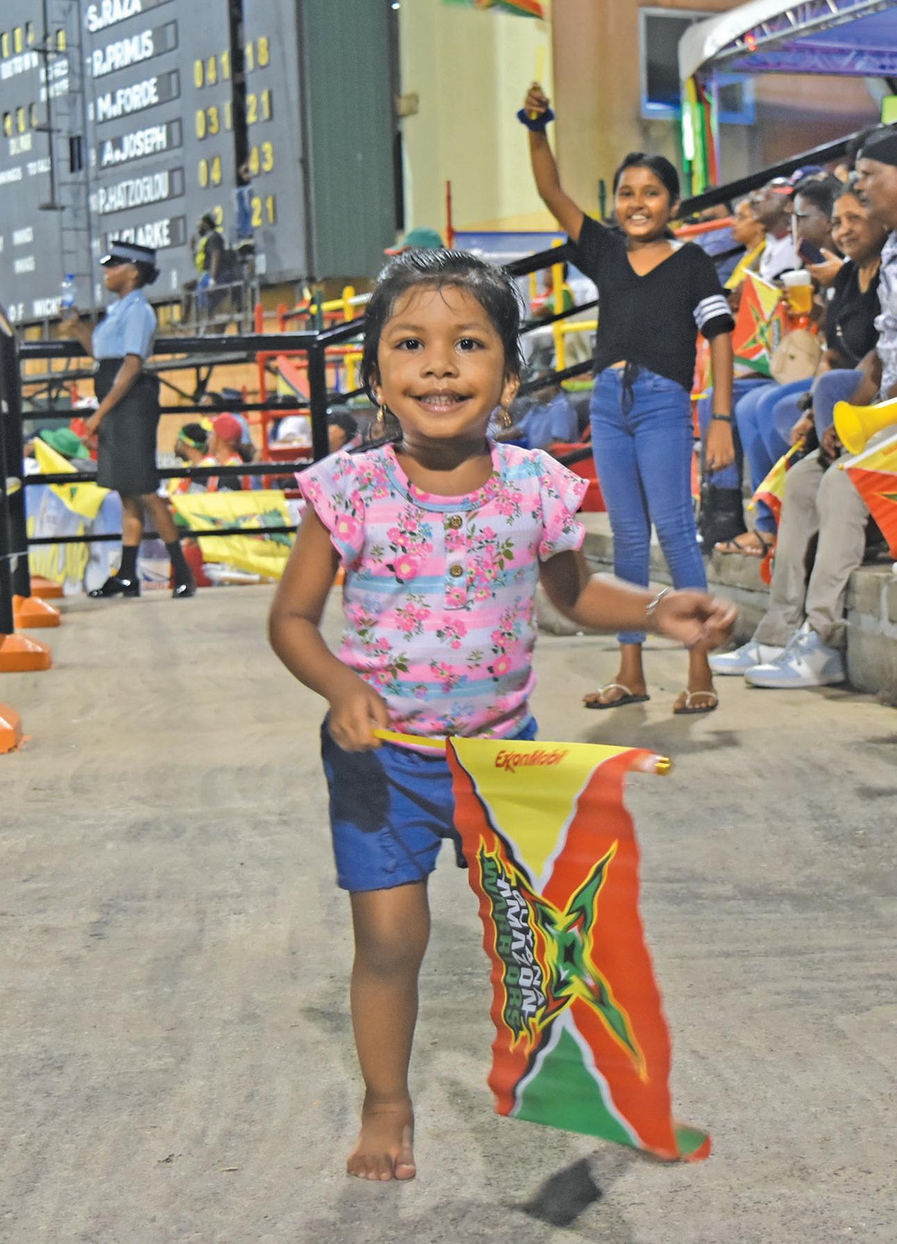 CPL 2023: Children join in the fun at the Guyana National Stadium on Thursday evening at the Guyana Amazon Warriors v St Lucia Kings game (Jemima Holmes photos)