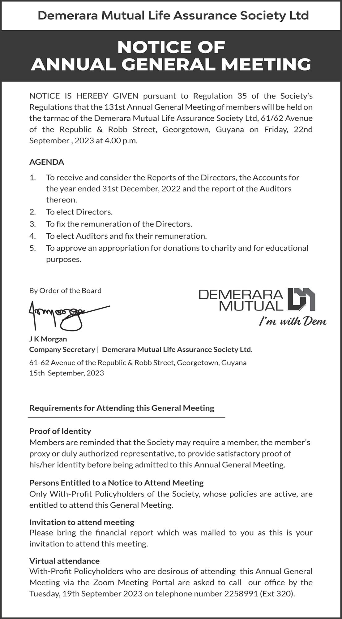 The Demerara Harbour Bridge will be closed to vehicular traffic on: Friday, September 15 –04:00h-05:30h and Saturday, September 16 – 05:00h-06:30h.