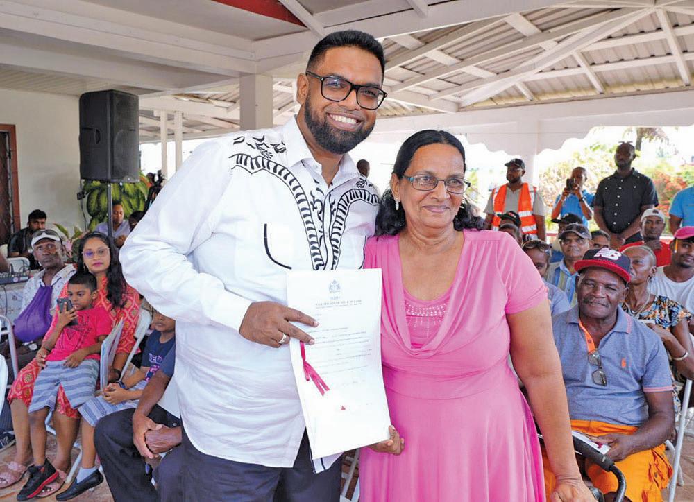 President Ali said titles will soon be distributed to residents of Blueberry Hill, Linden, Region 10; Bath in Region Five (MahaicaBerbice) and; Lima Sands, Region Two (PomeroonSupenaam).