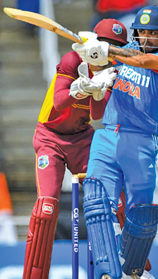 T20 fluency. He scored 35 off 30, which includ ed a six on each side of the wicket behind the square. Towards the end of the innings, Hardik also hit a few lusty blows to finish unbeaten. It was a late acceleration by him. At one stage, he was on 11 off 22. Off the next 30, he scored almost two runs per ball to finish on 70 not out off 52. West Indies' chase never got going, with Mukesh getting Brandon King to edge on behind in the very first over. The seam er kept peppering the good length outside off, and had Mayers chopping one onto his stumps and Hope nick ing one to first slip. Those blows reduced West Indies to 17 for 3.