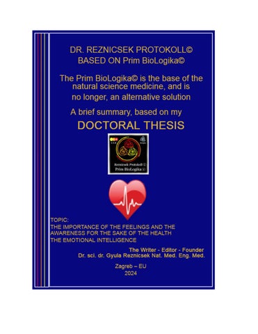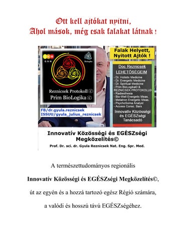 Doctor of Science in Natural Sci. - Energetic - Spiritual Medicine, founder Prim BioLogika© & REZNICSEK PROTOKOLL© & Innovative Social & WHOLEsome State Approach© - Bio-Well & MetaHunter energetic measurement expert and diagnostic, Radiesteth, Spiritual-Energetic Healing from Distance - World Communities WHOLEsome State Strategy, Risk & Prevention Management Consultant, Advisor, Author