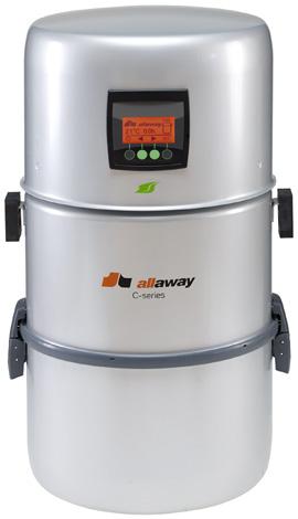Allaway C-serien kan enkelt plasseres i vaskeskapet. Rørsystemet kan skjules fullstendig på innsiden av veg gen eller veggbraketten kan overflatemonteres. I så fall ledes sentralstøvsugerens rørsystem til sen tralenheten på overflaten.