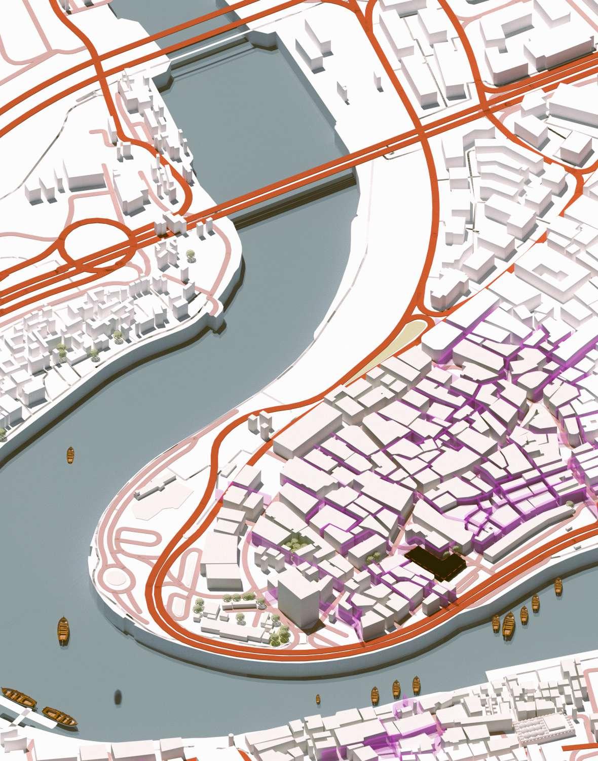 using all These landmarks To carve ouT Walk paThs ThaT Will connecT These areas and landmarks While providing shorTcuTs for pedesTerians. pedesTrian-friendly sTreeTs.