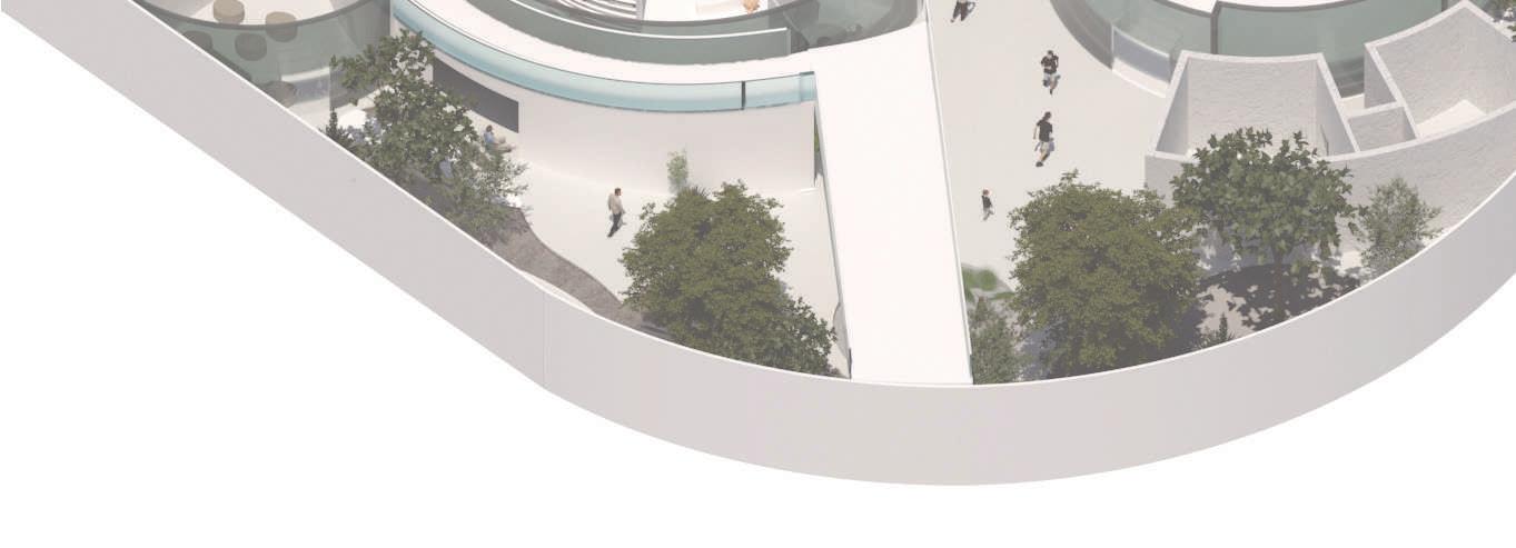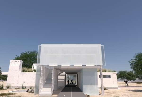 INTEGRATING THE STRUCTURE WITH THE GROUND. AVOIDING OVERPOWERING THE PARK. ADDING A COURTYARD IN A COOLER SUNKEN PLACE THAT PROVIDES COMFORTABLE SHADING FOR VISITORS.BUILDING UNDERGROUND ALLOWS FOR COOLER STRUCTURE. MODEL REPRESENTING HOW THE ACCESS POINTS CAN BE EXTENDED OR HIGHLIGHTED AND CONTINUING INTO A RAMP.