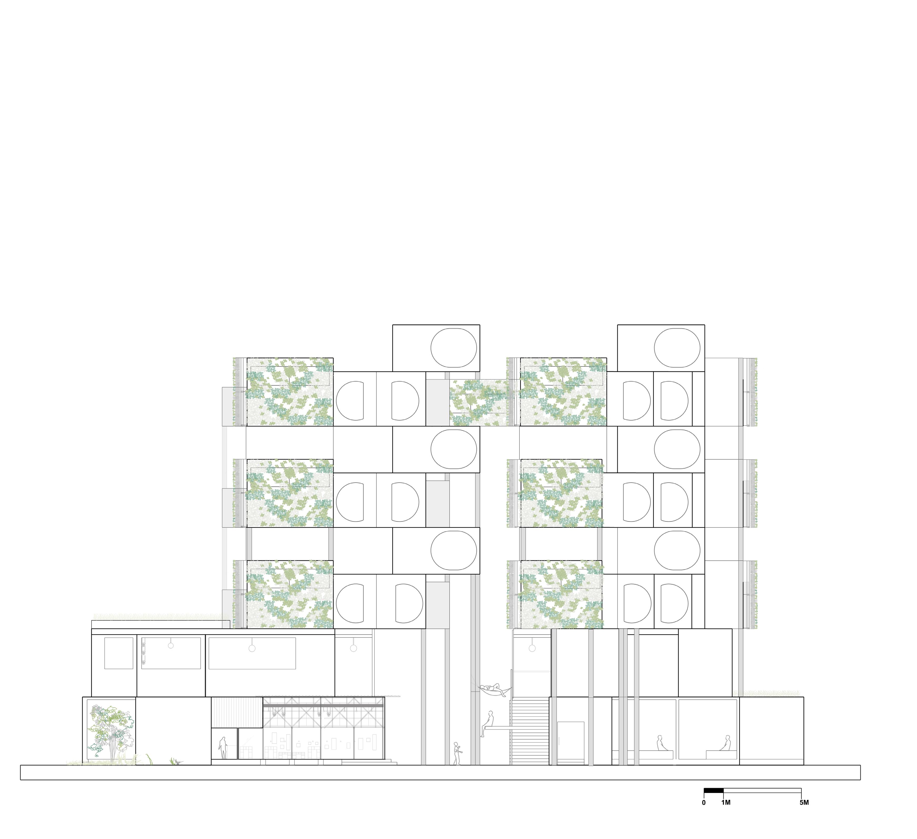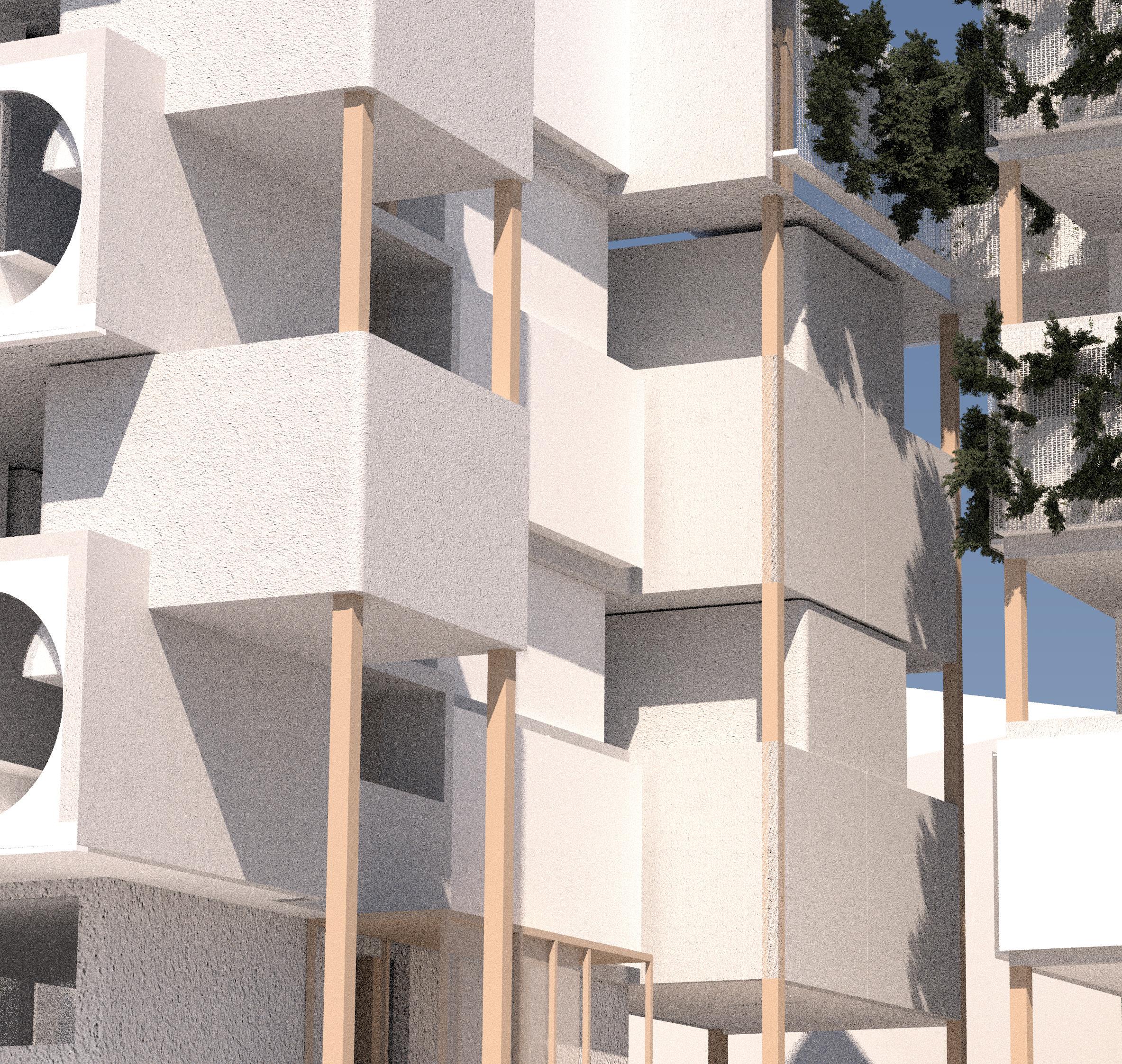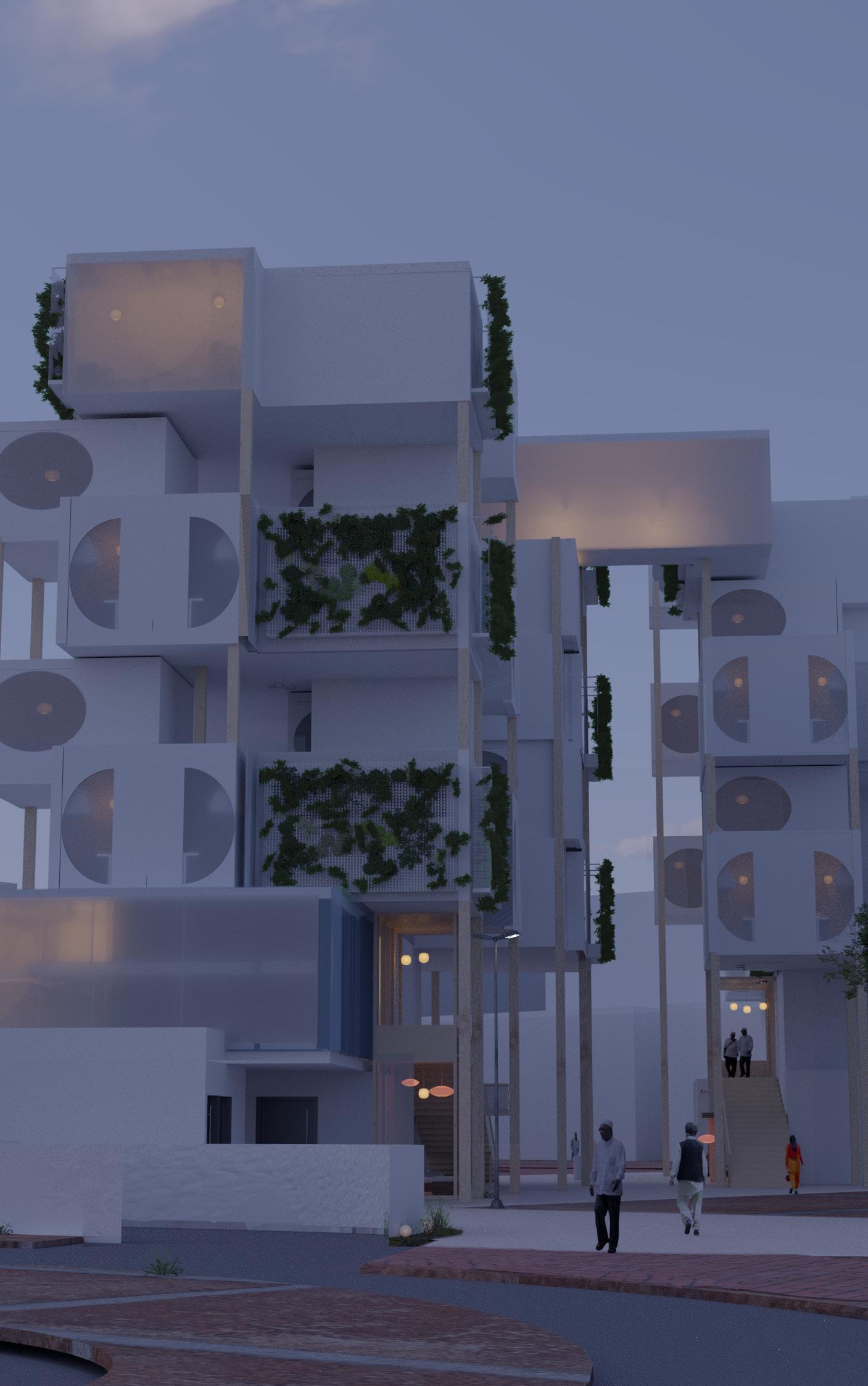 THE TYPICAL PERIMETER-DEFINING BUILDING ENVELOPE IS ADDRESSED AS A PERMEABLE FAÇADE OR EDGE, AKIN TO THE HISTORIC SOUKS OF THE MIDDLE EAST. THE PERMEABLE FACADE CAN PROMOTE SOCIAL INTERACTION AND PASSIVELY ENHANCE COMFORT CONDITIONS WHILE ALSO PROMOTING ENVIRONMENTAL SUSTAINABILITY.