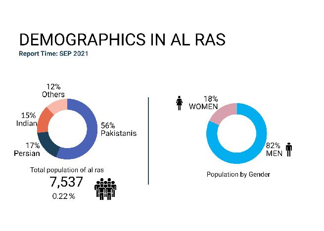 mosT people ThaT live in al-ras are from pakisTan, and an adequaTe number of people are from iran and ndia, making al ras an admiringly culTural place. populaTed W Th many Tea shops ThaT serve karak, karak is a parT of Their everyday lives and is knoWn as masala chai', roughly TranslaTed as Tea WiTh spices. hoWever, mosT residenTs and pedesTrians don'T have choices of ouTside seaTing or a place To socialize comforTably.