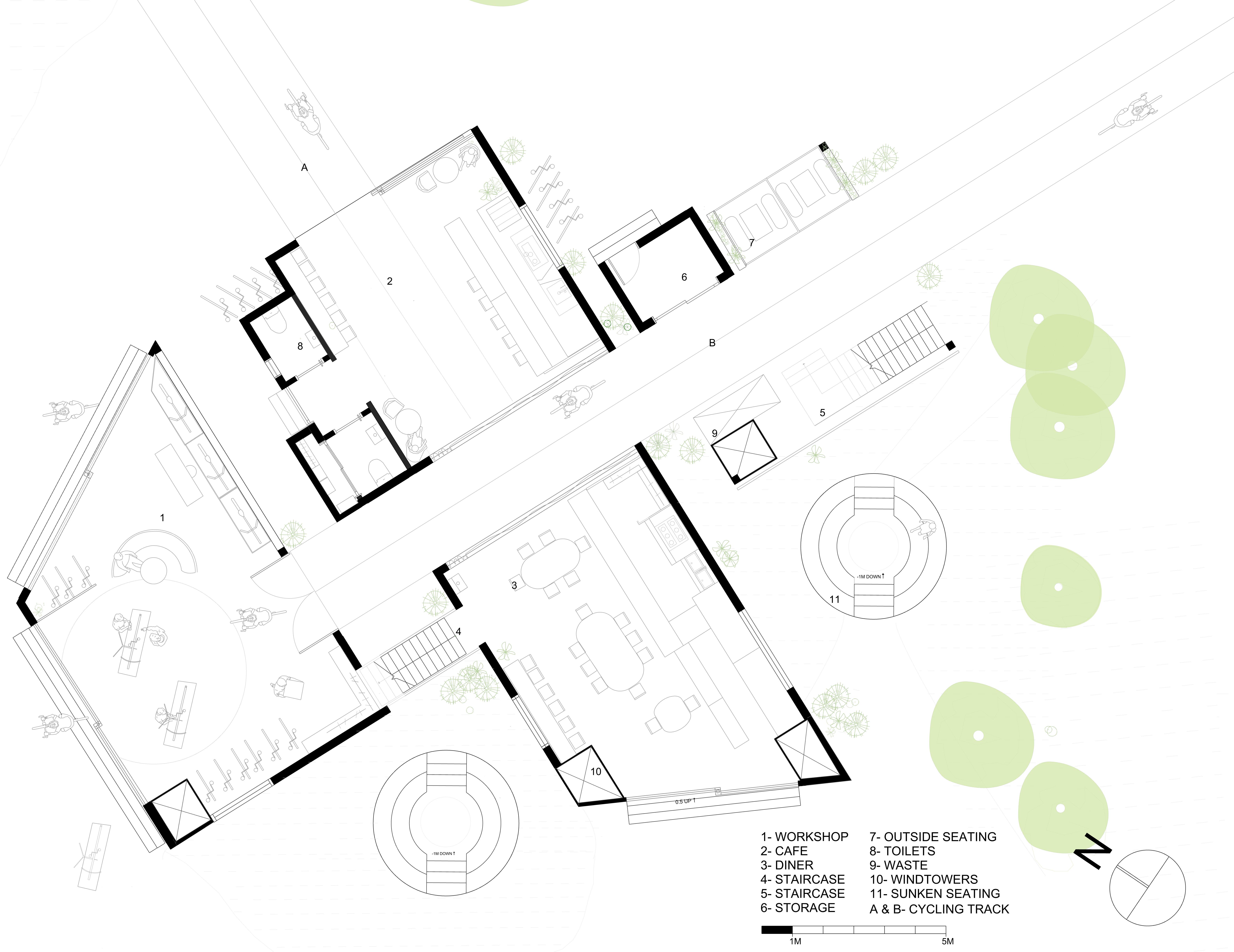 ACTING AS THE SPINE OF THE PROJECT,PLACED IN A POSITION WHERE WIND IS STRONGER.