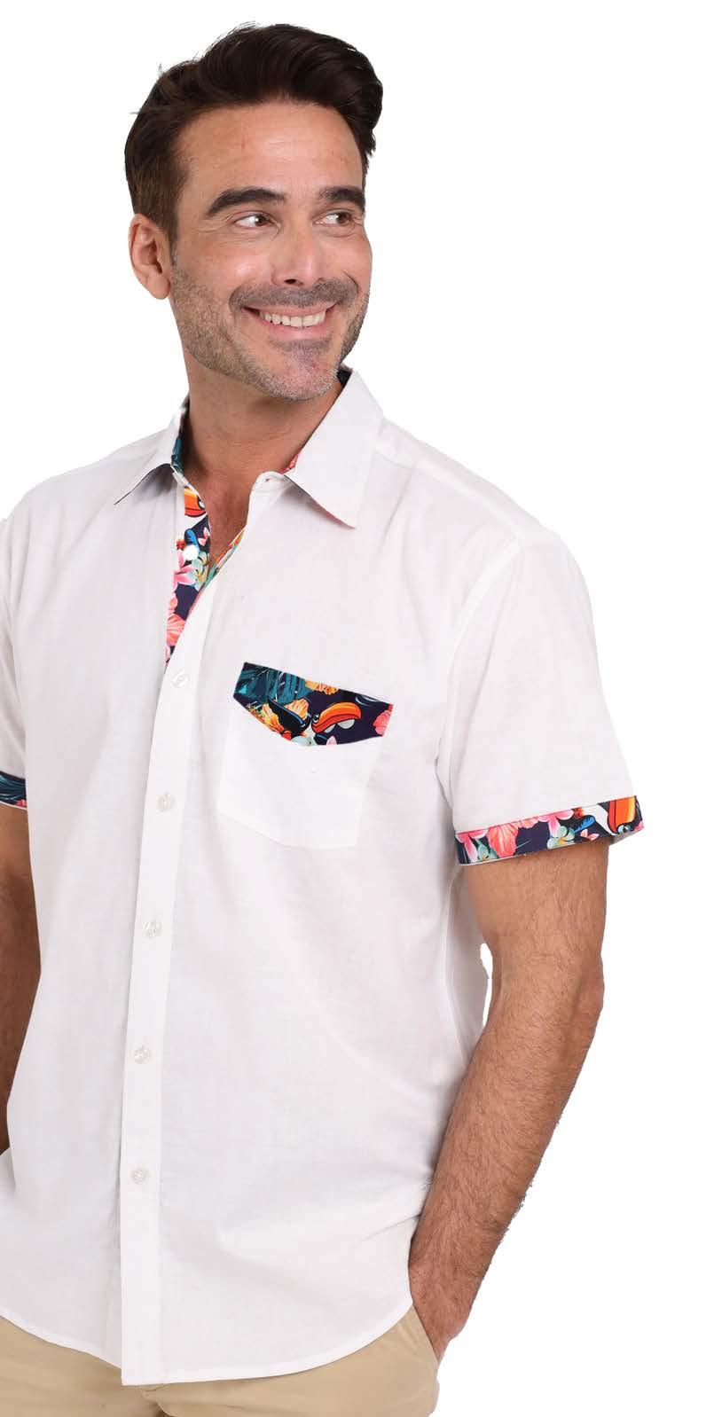 • Beautifully embroidered toucan stitched over a circular frayed edge patch on left chest