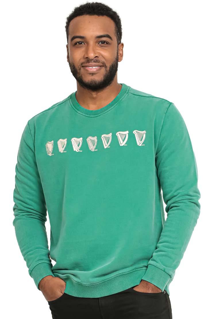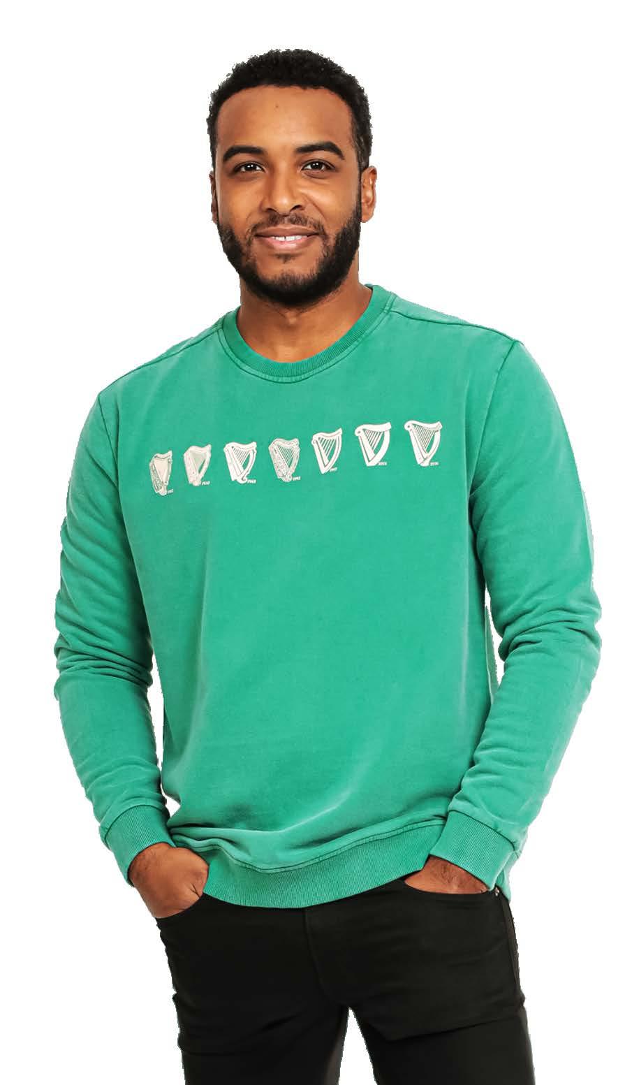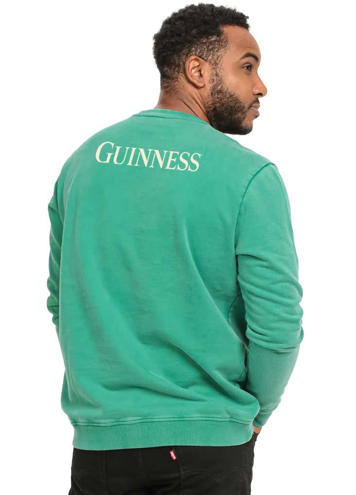 100% BCI cotton • Distressed premium fabric • Ribbed sleeve cuffs and neckline • Exclusive Guinness toucan gold foil print and Harp.