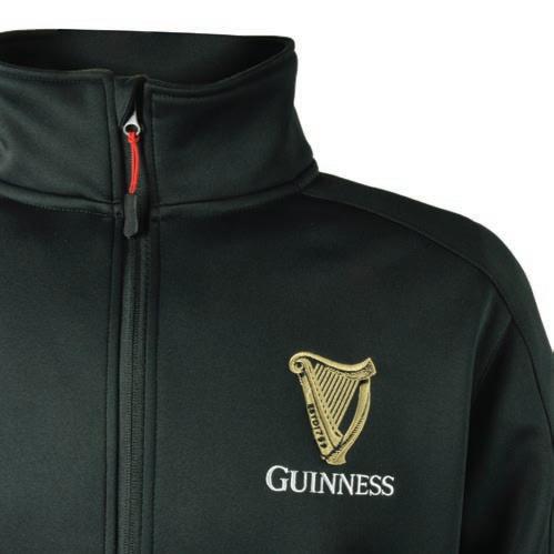 100% Recycled polyester • 300gsm • Guinness embroidery trademark on left chest • White piping surrounding stand up collar • Quarter zip • Full Guinness logo on woven label stitched near waist line hem.