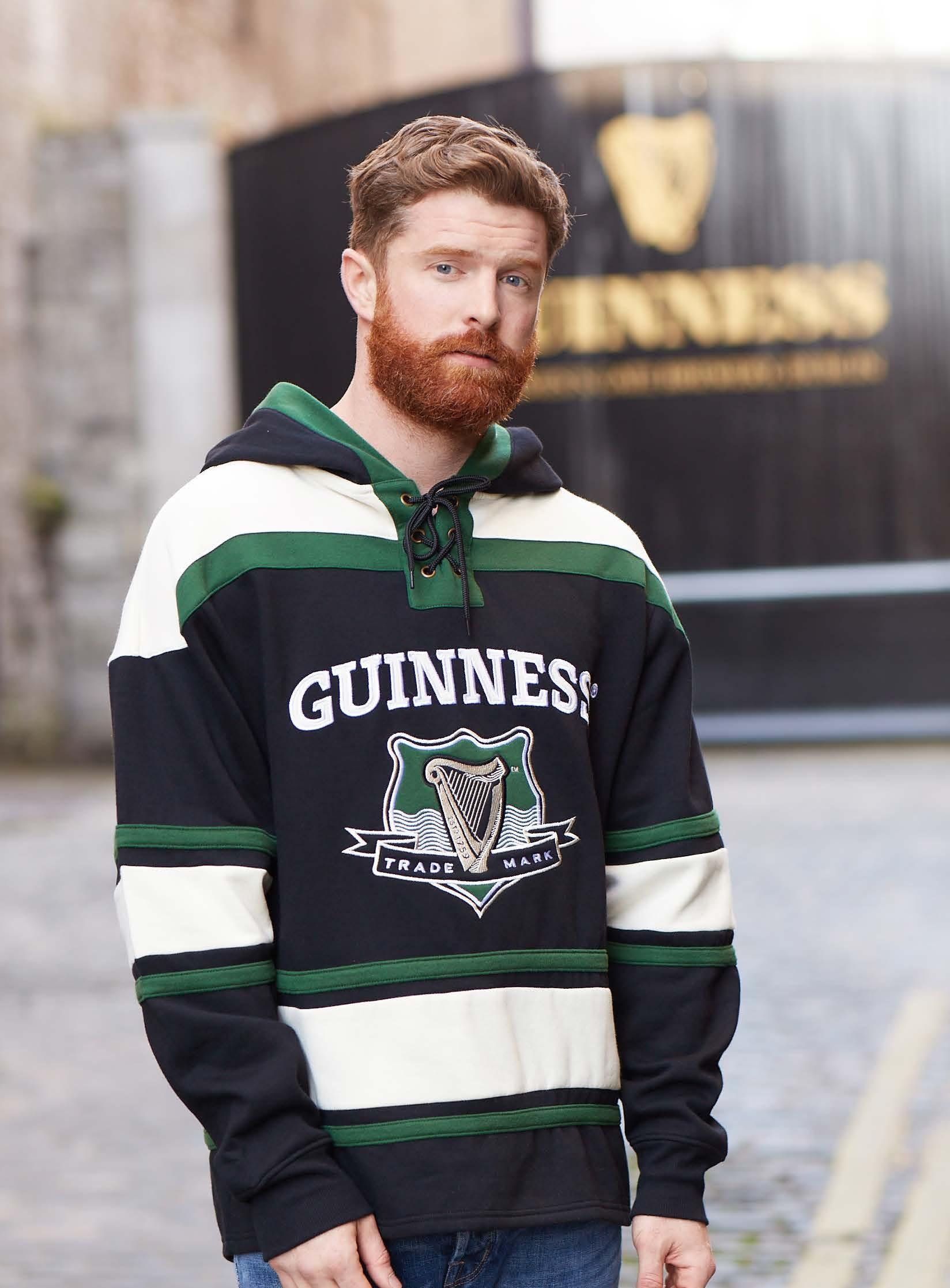 • 23s/2 twisted yarn • All time favourite classic rugby jersey • Raglan sleeve cut • Durable heavyweight fabric • High quality cut and sew cream panels • Heavyweight twill collar • Double layer placket • Vintage Guinness embroidery chest patch with frayed edging • Classic pint and harp embroidery on patch with frayed edging stitched to right sleeve • Guinness branded neck tape for extra comfort.