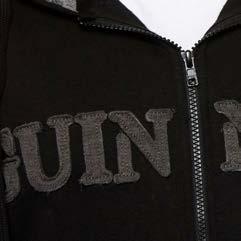 100% Cotton • 280gsm • Long sleeve • 23s/2 twisted yarn • Double embroidery toucan shaped outline design on right chest • Large Guinness text embroidery on back • Double layer hood lining in flashy red colour to compliment toucan design • Cut and sew white and grey panels • Arthur Guinness signature detail embroidery on lower left waist line • Guinness branded neck tape for extra comfort.