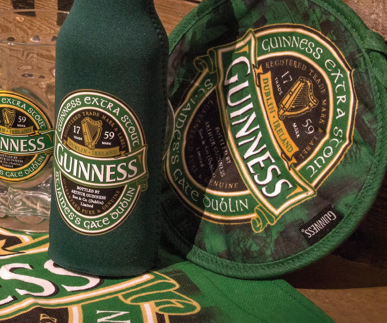 • Placket closure with a beautifully finished faux leather patch embossed with Guinness logo.
